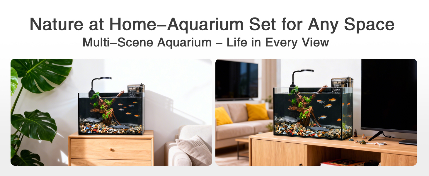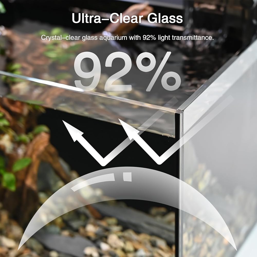 • خزان أسماك زجاجي عالي الجودة: خزان أسماك زجاجي فائق الوضوح مصنوع من زجاج شفاف للغاية بسمك 5 مم، مما يوفر وضوحًا بصريًا استثنائيًا. لإنشاء منظر طبيعي أكثر مثالية، يتميز هذا الحوض الزجاجي بخلفية زجاجية سوداء بدلاً من الملصقات التي تخاطر بالتلف والتقشير بمرور الوقت. يمكنك الاستمتاع بالاستخدام طويل الأمد بثقة. بالإضافة إلى ذلك، يستخدم حوض السمك الزجاجي الشفاف لسطح المكتب مادة لاصقة سوداء عالية الجودة، مما يعزز الجمال مع منع التسربات.