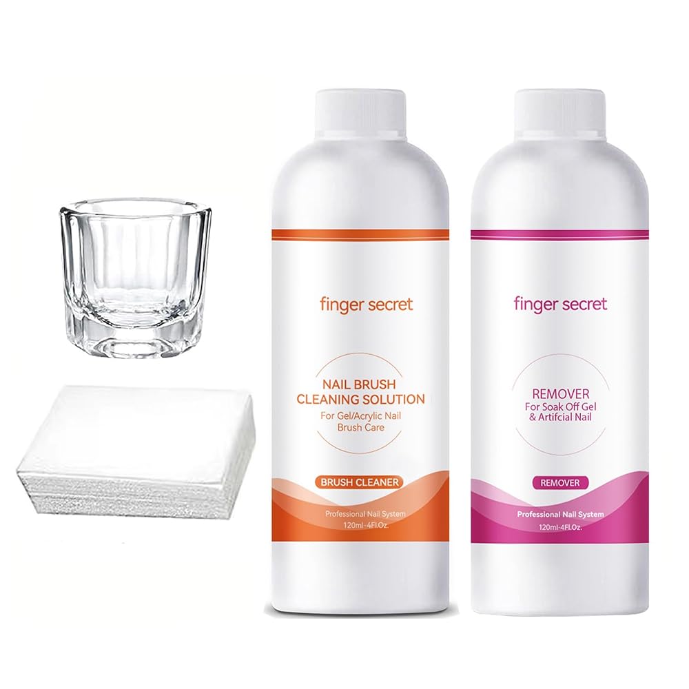 • مجموعة محلول تنظيف فرشاة الأظافر فينجر سيكريت: تحتوي على منظف فرشاة فن الأظافر فينجر سيكريت 120 مل، كوب زجاجي، 100 وسادة قطنية. مثالية للاستخدامات المتعددة، تعمل على جميع أنواع فرش الأظافر، بما في ذلك فرش الأظافر الجل وفرش الأظافر الأكريليك وفرش فن الأظافر. استخدمي منظف فرش الأظافر في صالونك أو في المنزل للحصول على تجربة نظيفة وفعالة للعناية بالأظافر.