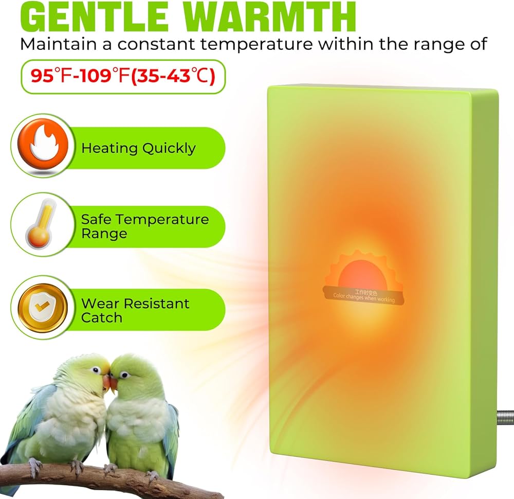 Snuggle Up Bird Warmer: يخلق مكانًا دافئًا مثاليًا لطائرك ليحتضنه. ينبعث سطح التسخين الناعم دفء لطيف ومهدئ، ويحاكي الراحة الطبيعية لأشعة الشمس ويشجع على الاسترخاء والراحة
