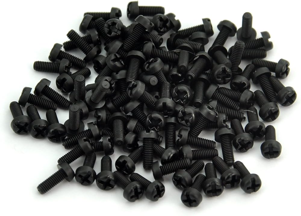 - M3 x 8mm Black Nylon Metric Phillips-Slotted Pan Head Machine Screw.