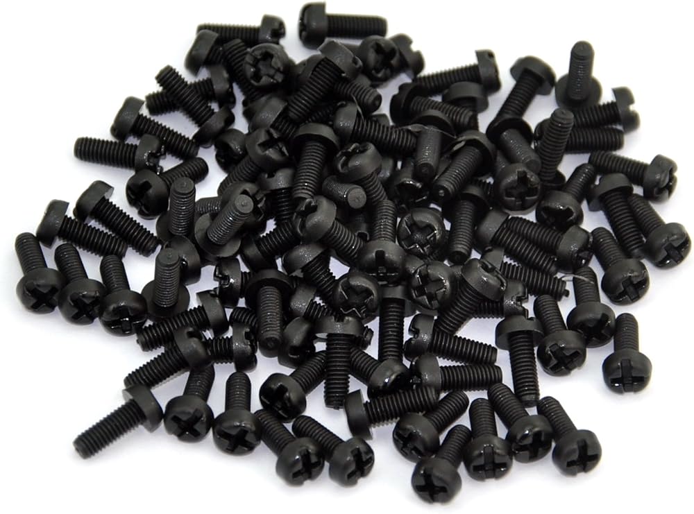 إلكترونيات-صالون 100 قطعة M3 × 8 مم مسمار ماكينة نايلون، أسود، مجموعة محرك مشقوق فيليبس، رأس عموم، متري
