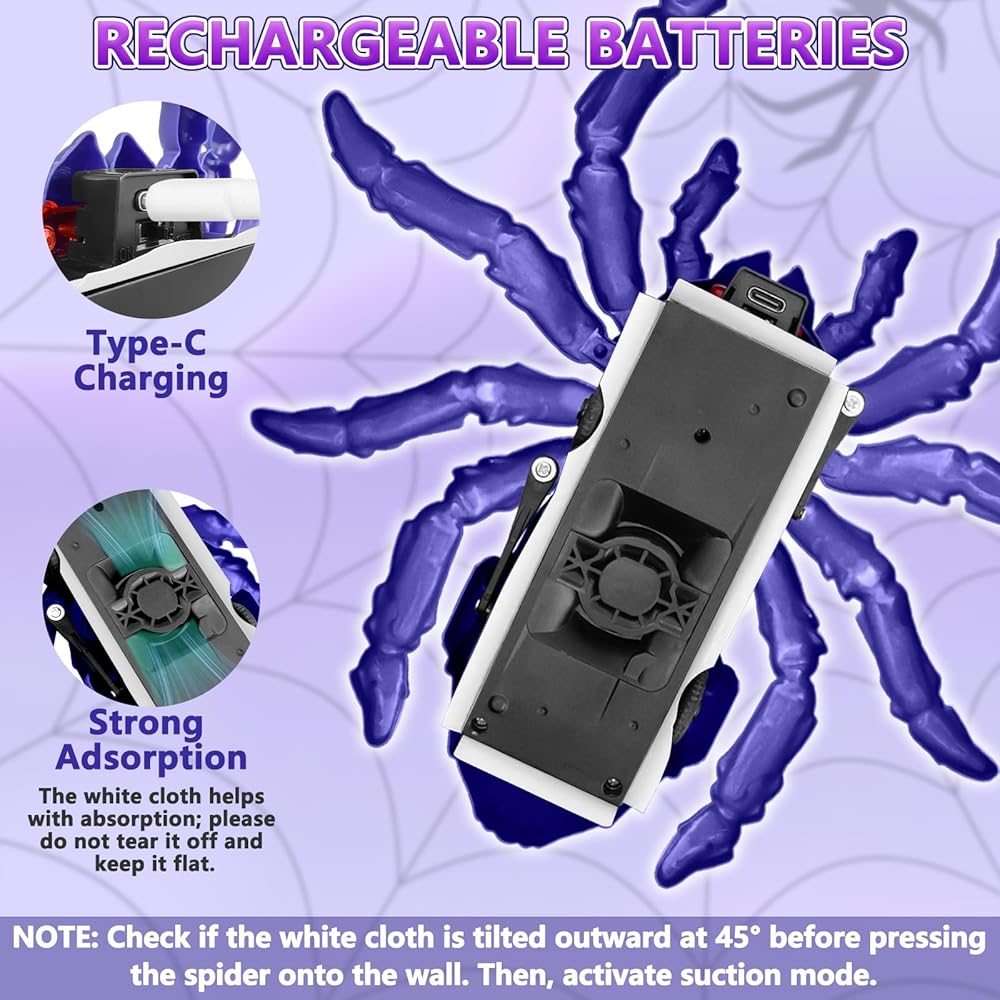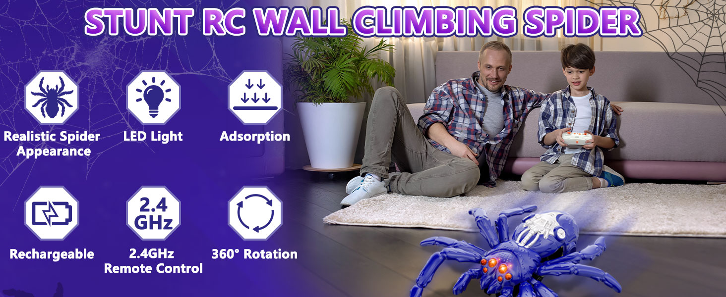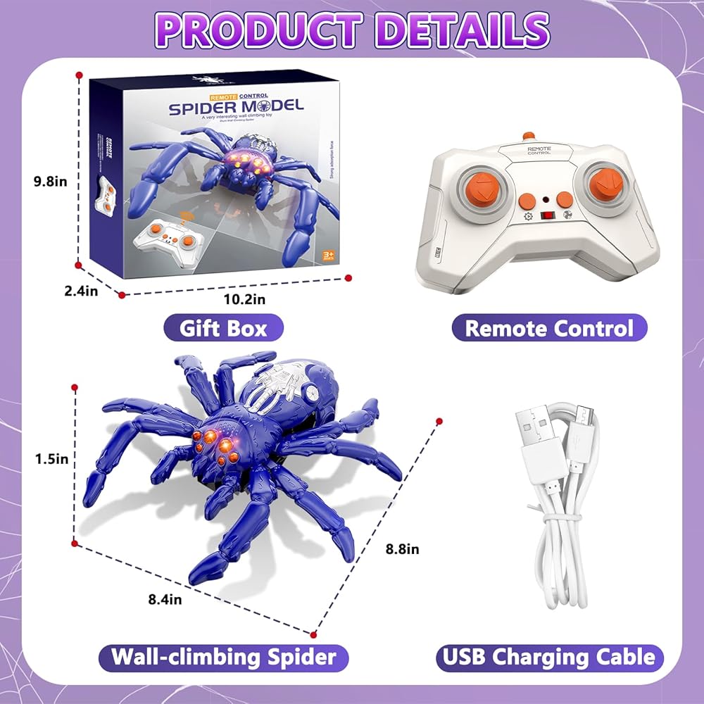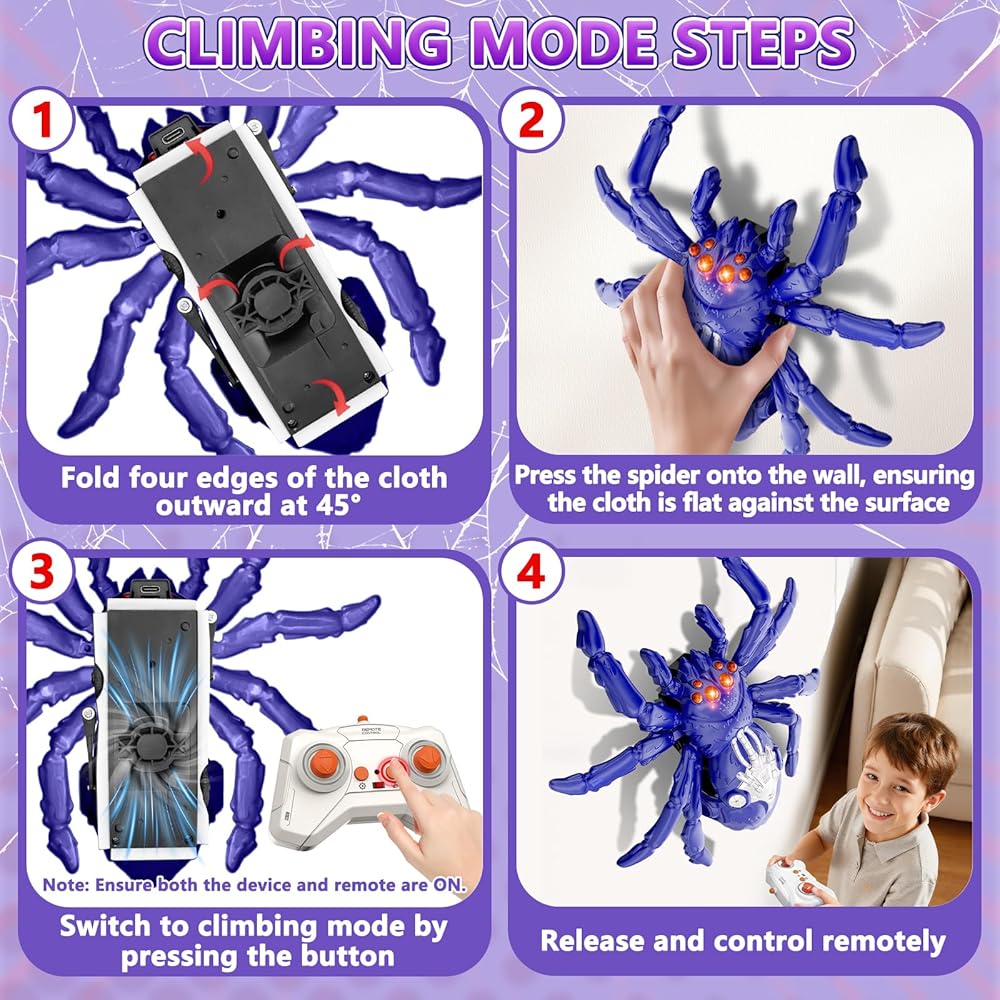 مجموعة تسلق الجدران والسباق على الأرض: يستخدم هذا العنكبوت الفريد للتحكم عن بعد تقنية الشفط المتقدمة لتسلق الجدران والأسقف والزجاج والأسطح الرأسية الملساء الأخرى. يمكنها أيضًا السباق على الأرض مثل سيارة RC العادية، مما يوفر ساعات من المرح المثير.