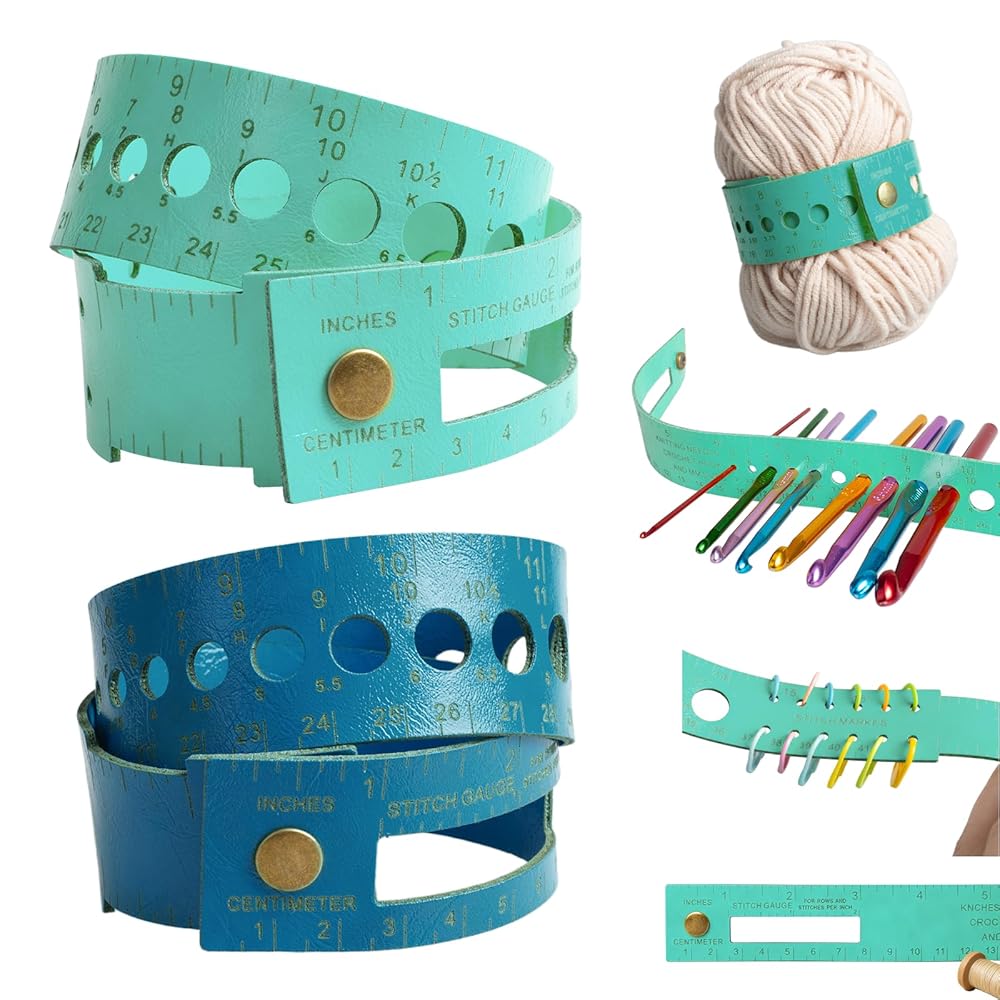 【أداة قياس متعددة الوظائف】ارتديها كغطاء للمعصم، ثم ثبتها على إبر الحياكة أو حزمة الغزل. أداة قياس قياس الكروشيه مما يجعلها أداة أساسية للحرفيين وعشاق الأعمال اليدوية.