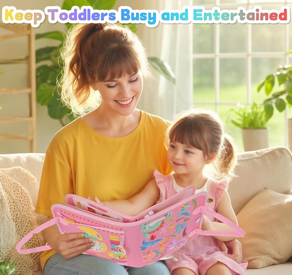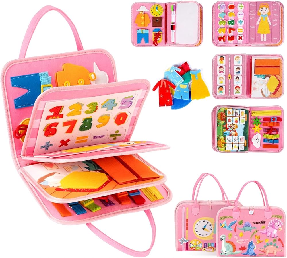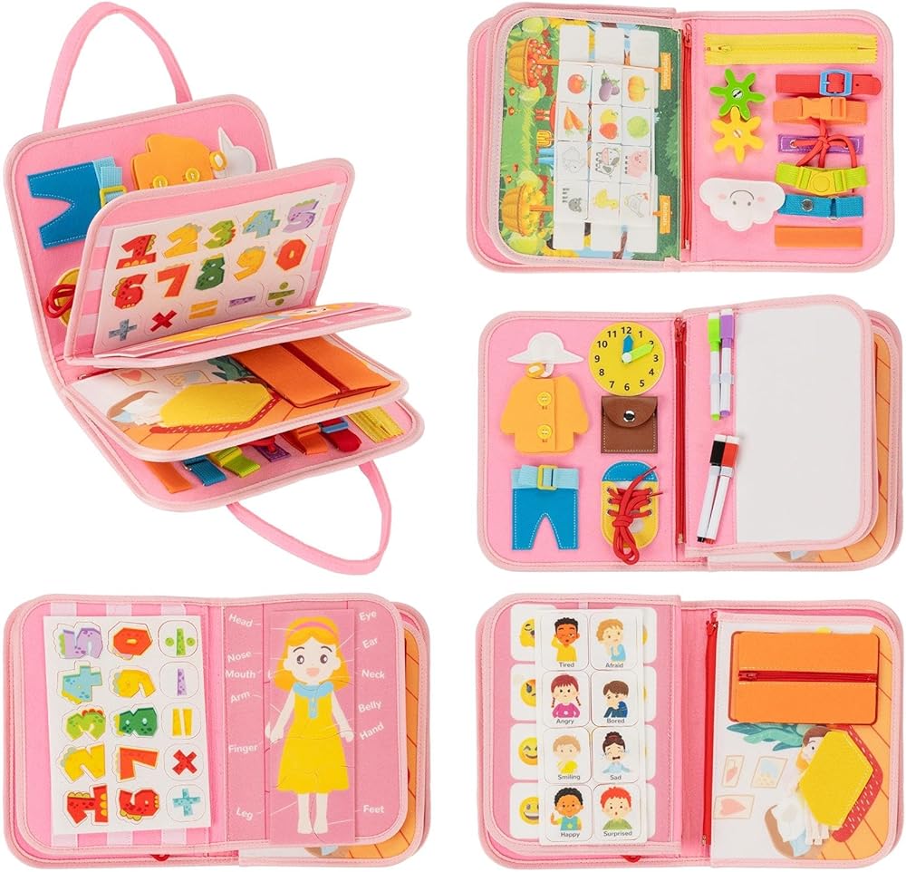 ألعاب مونتيسوري المزدحمة للهدايا التي تبلغ من العمر سنة واحدة، ألعاب الفتيات التعليمية، كتب الأنشطة الهادئة، هدايا الأطفال الصغار، كتاب مشغول للأطفال الصغار من سن 1 إلى 3 سنوات، لعبة سفر وردية اللون لمدة عام واحد