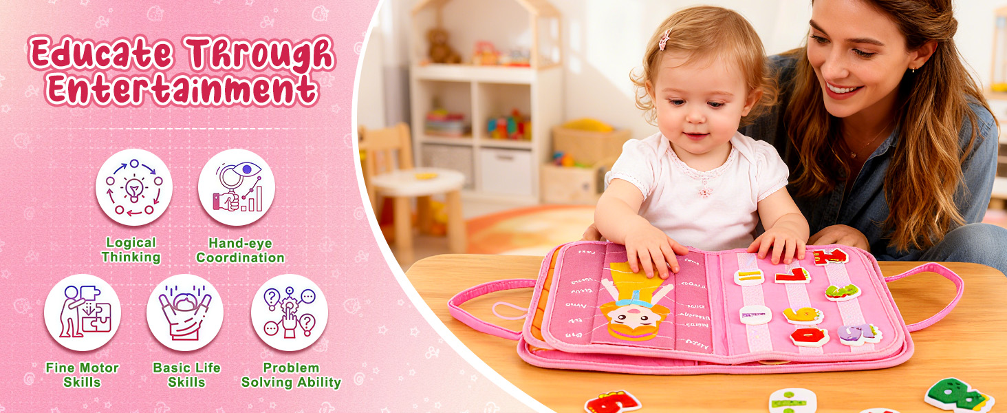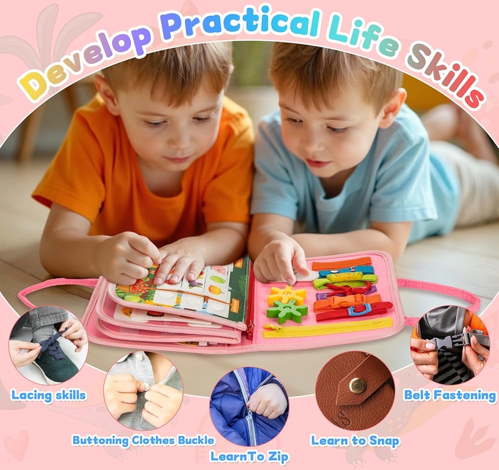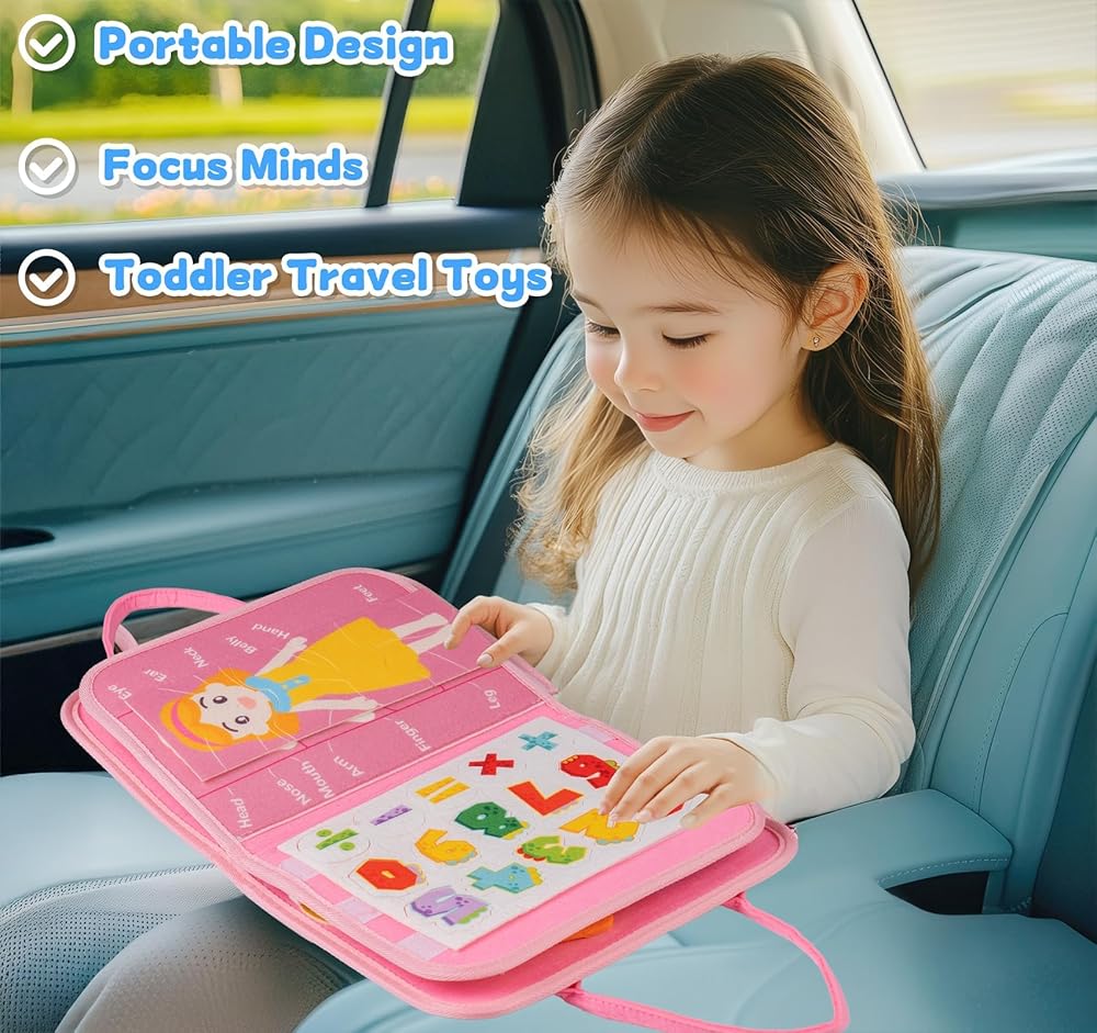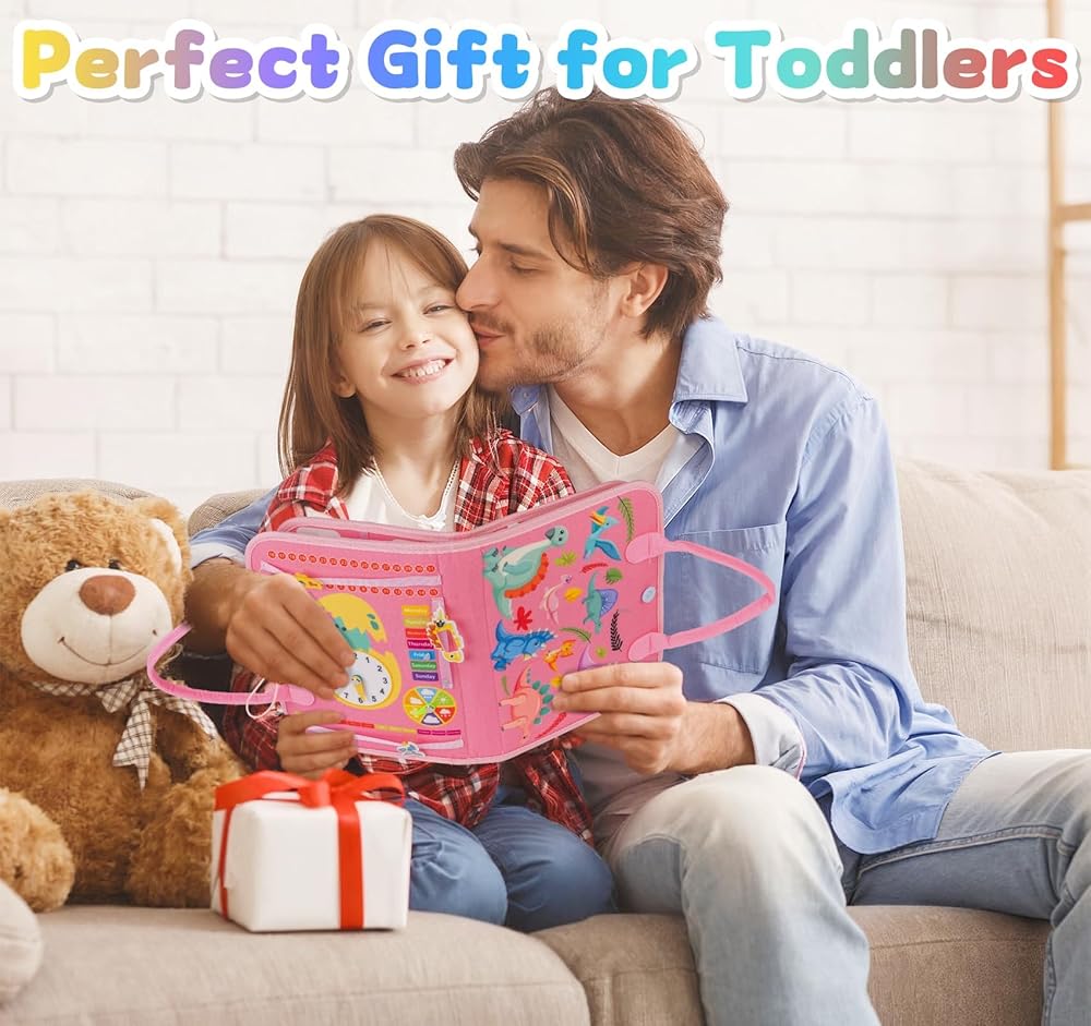 ألعاب مونتيسوري المزدحمة للهدايا التي تبلغ من العمر سنة واحدة، ألعاب الفتيات التعليمية، كتب الأنشطة الهادئة، هدايا الأطفال الصغار، كتاب مشغول للأطفال الصغار من سن 1 إلى 3 سنوات، لعبة سفر وردية اللون لمدة عام واحد
