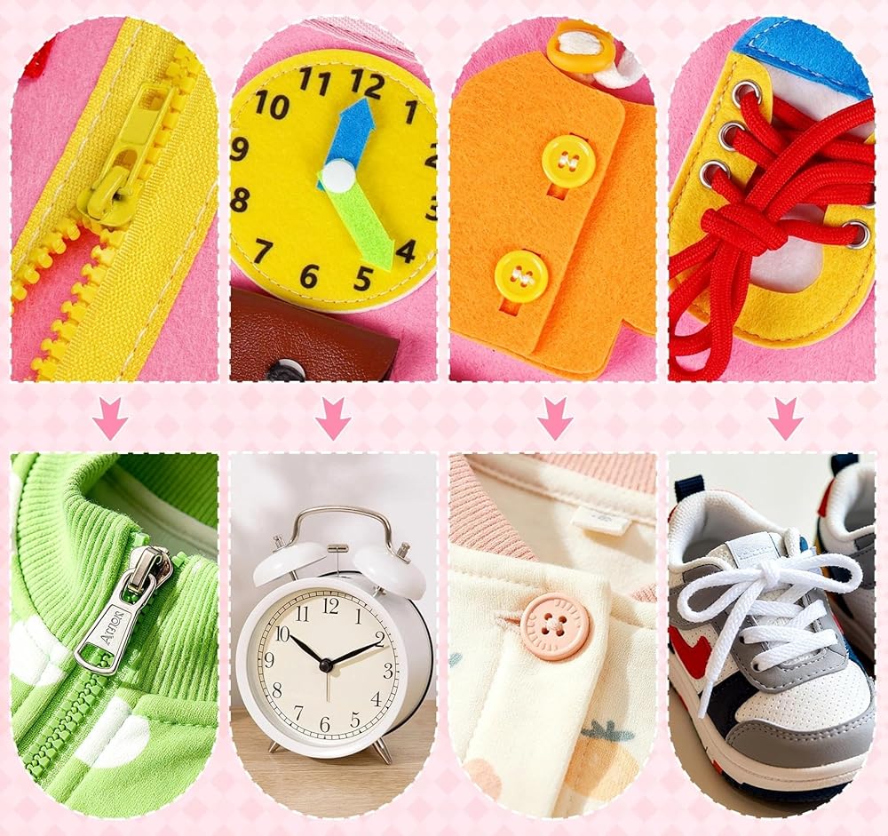 👐 إتقان المهارات الحياتية العملية: تتميز لوحة Anstore المزدحمة للأطفال بعمر سنة فما فوق بالعديد من التحديات اليومية مثل الإبزيم وربط أربطة الحذاء واستخدام السحابات والأزرار المتطابقة. تعمل هذه الأنشطة على إعداد الأطفال بخبرة لارتداء الملابس بشكل مستقل وبناء البراعة الأساسية.