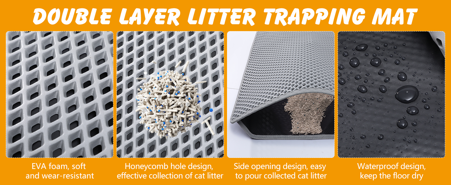 【احتجاز فضلات فعال】يلتقط سطح قرص العسل ذو الطبقة المزدوجة ويحمل الفضلات السائبة من جميع أنواع صناديق فضلات القطط، مما يحافظ على نظافة الأرضيات ويقلل من المسح اليومي.