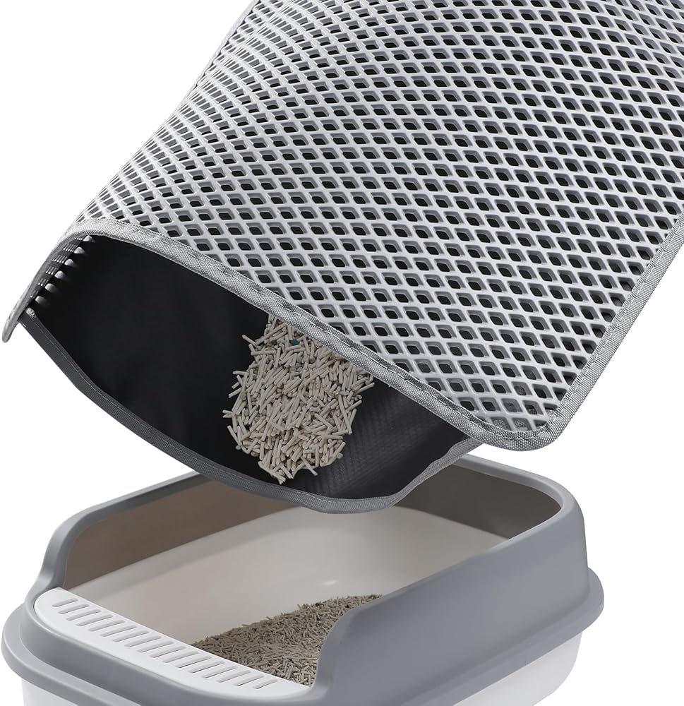 تصميم آمن مانع للانزلاق: الجزء الخلفي المضاد للانزلاق يحافظ على السجادة في مكانها، مما يمنع الحركة ويضمن أن قطتك يمكنها الدخول والخروج من صندوق الفضلات بأمان.