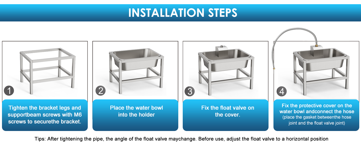 جاهز للاستخدام: يأتي مع ملحقات كاملة للتجميع السريع - لا حاجة إلى أجزاء إضافية. تشتمل العبوة على حامل من الفولاذ المقاوم للصدأ، وخزان مياه من الفولاذ المقاوم للصدأ سعة 3 جالون، ونظام صمام عائم، وخرطوم، وجميع أجهزة التثبيت
