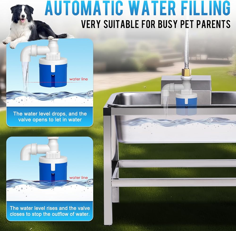 التعبئة التلقائية: يضمن جهاز سقاية الكلاب المرتفع المزود بصمام عائم تعبئة المياه تلقائيًا، وهو مثالي لآباء الحيوانات الأليفة المشغولين، ويحافظ هذا النظام على مستوى مياه ثابت، بحيث تتمكن حيواناتك الأليفة دائمًا من الوصول إلى المياه العذبة