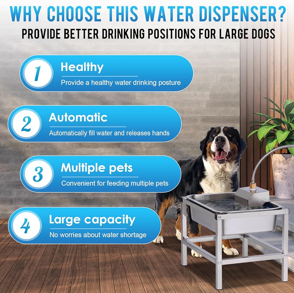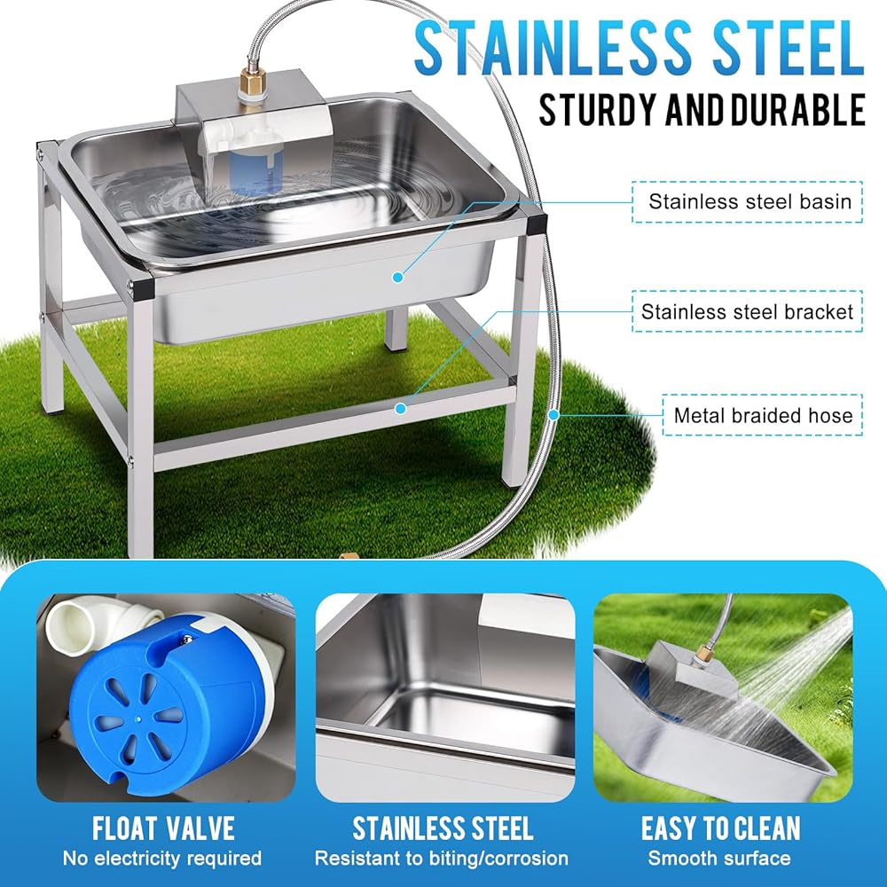 موزع وعاء الماء التلقائي للكلاب 3 جال للكلاب الكبيرة في الهواء الطلق وعاء ماء مرتفع للكلاب مع حامل، سقي الحيوانات الأليفة من الفولاذ المقاوم للصدأ مع صمام تعويم للماشية من سلالات الماعز الكبيرة