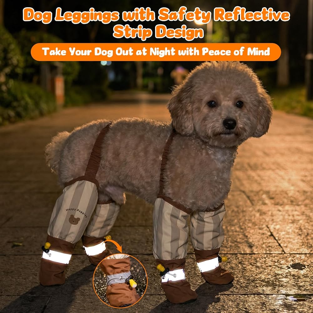 【تصميم قابل للتعديل وأشرطة عاكسة】يتم ربط جميع السراويل الضيقة الأربعة الخاصة بنا بحزام قابل للتعديل، والذي يناسب قدم وساقي كلبك تلقائيًا عند المشي. يوفر تصميم الحزام القابل للتعديل راحة ومناسبًا لحيوانك الأليف، مما يسهل عليه المشي والجري. يوجد ملصق عاكس سحري عند الكاحل لحماية قاعدة أرجل الحيوان الأليف وضمان السلامة.