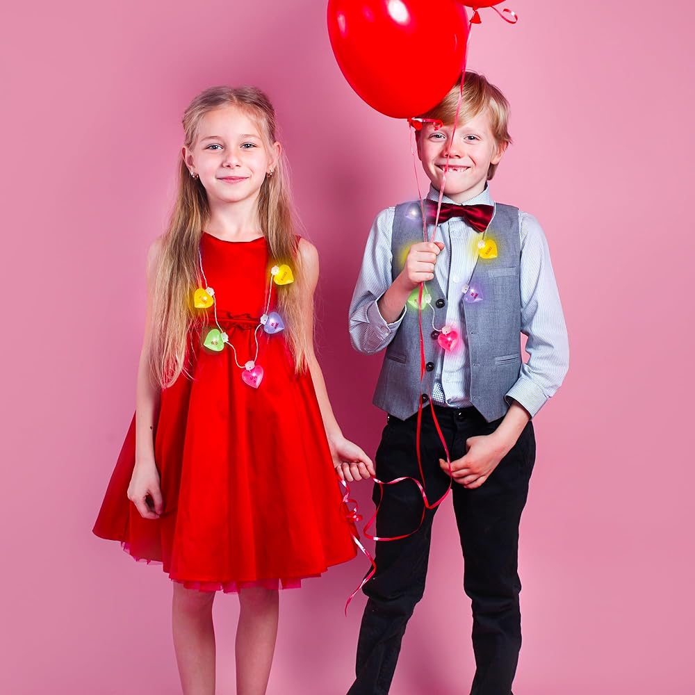 قلادة مضيئة لعيد الحب من ArtCreativity - قلادة قلب ضخمة مع أقوال لطيفة - تضيء بألوان متعددة - قلادة LED على شكل قلب للفتيات والفتيان - هدايا عيد الحب للأطفال