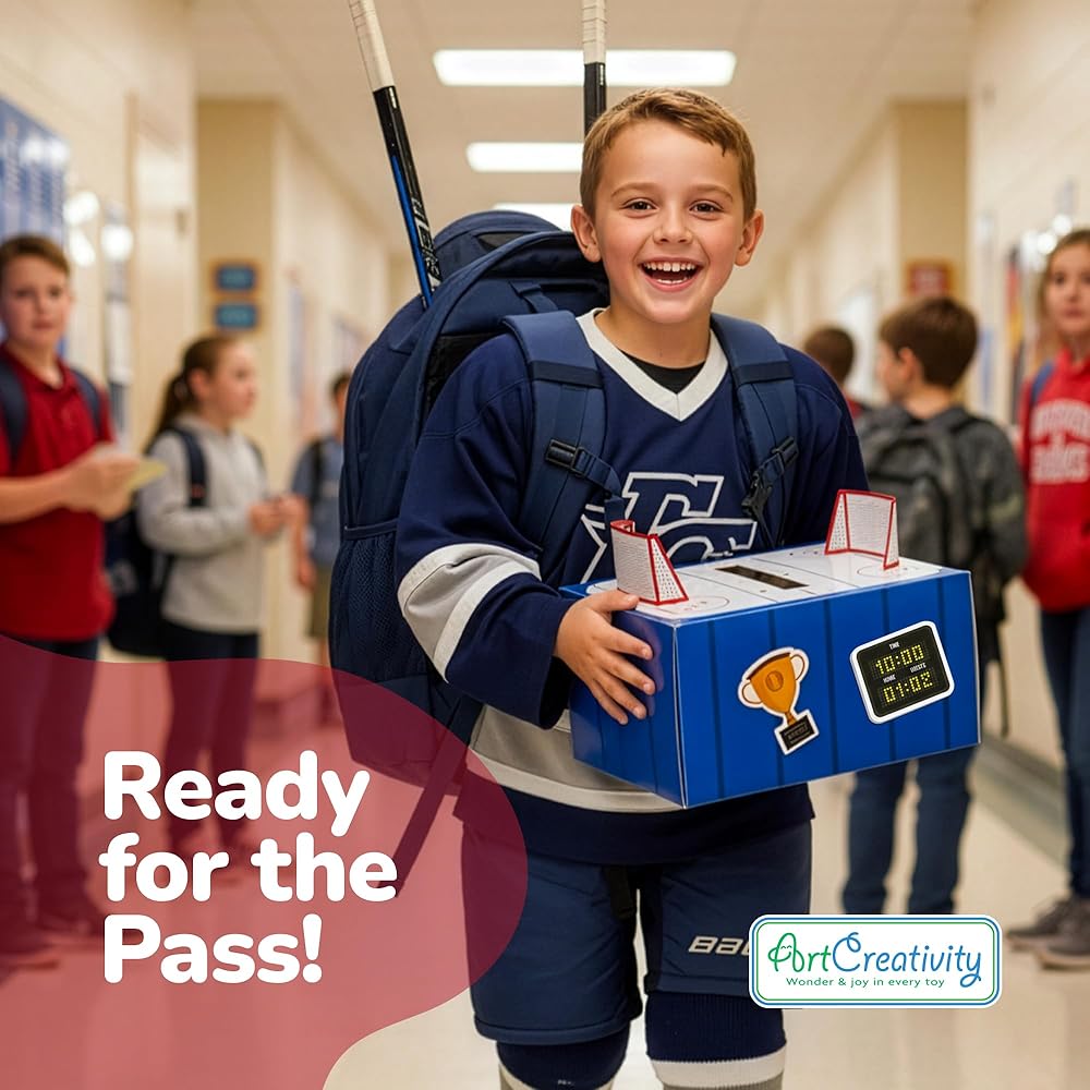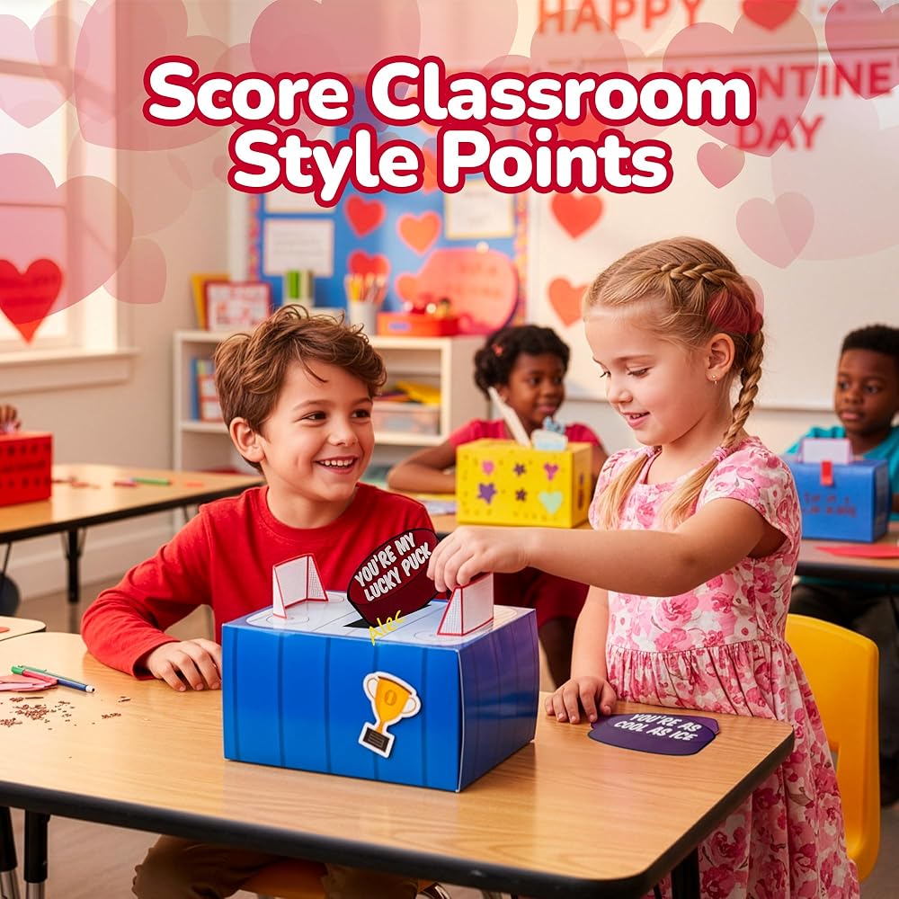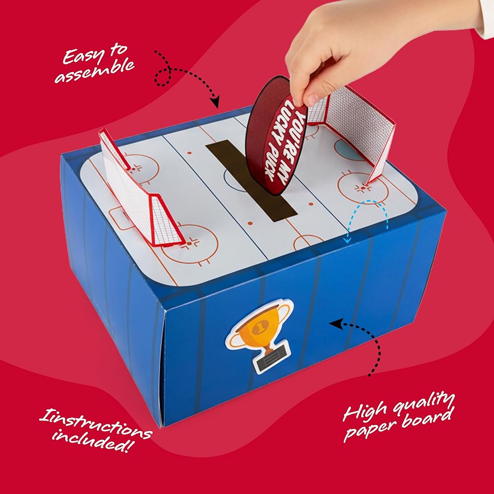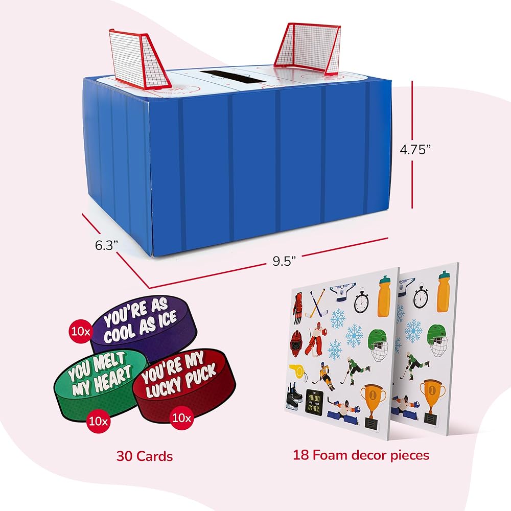 أوه، رائع جدًا: هذه ليست مجرد مجموعة من صناديق عيد الحب للأطفال. إنها تبرز بموضوع الهوكي الممتع الذي يتميز بتفاصيل رياضية وعناصر تصميم مرحة. حتى بعد عيد الحب، يمكن استخدامها كتذكار رائع أو قطعة ديكور للغرفة لمحبي الرياضة الصغار.