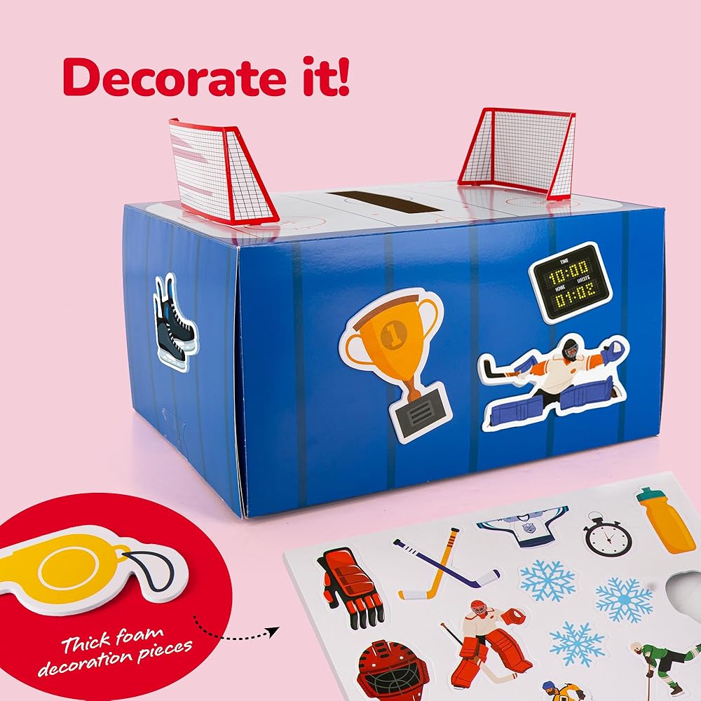 صندوق حرفة هوكي عيد الحب من آرت كرياتيفيتي للأطفال - اصنع مجموعة صندوق بريد عيد الحب الخاص بك للأولاد والبنات - تتضمن 30 بطاقة، صندوق، 18 قطعة إسفنجية مزخرفة - لوازم حرفية لطيفة
