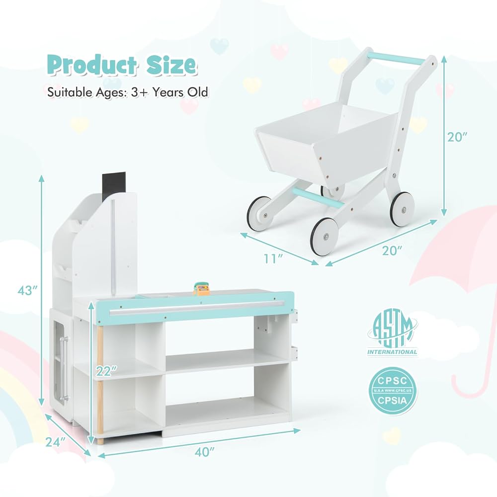 • Focus on Quality: Made from premium wood and water based paints, BPA free. This wooden pretend play grocery store is fully compliant with the requirements of the U.S. ASTMF-963 and CPSIA safety standard for physical and chemical safety testing. Besides, smooth rounded corners provide better protection, effectively preventing children from scratching and bumping.