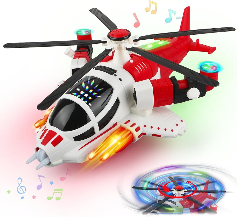 دوران 360 درجة وتجنب العوائق الذكية: شاهد لعبة الهليكوبتر هذه وهي تدور 360 درجة مع الأضواء الساطعة والموسيقى، ثم قم بتغيير الاتجاه تلقائيًا عندما تصطدم بعائق. يتحرك في جميع أنحاء الغرفة، ويقدم تفاعلًا لا نهاية له