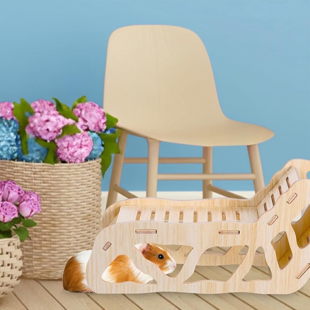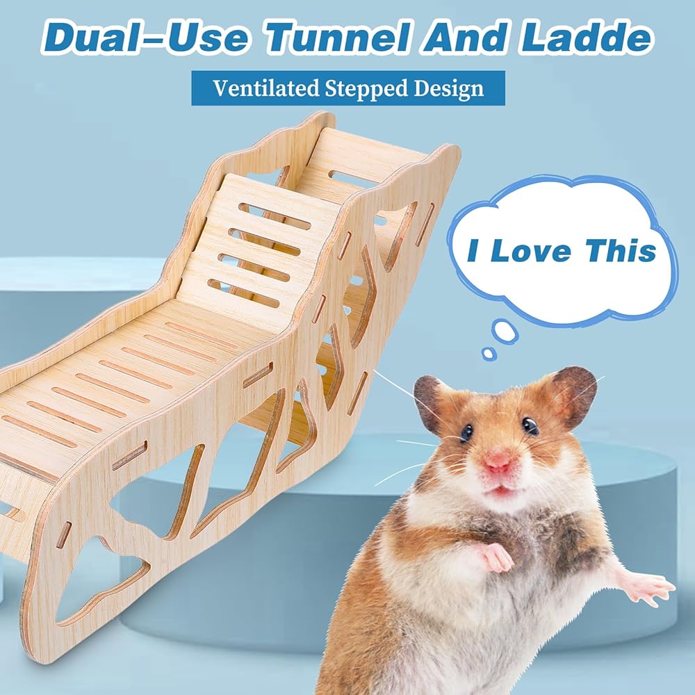 Natural Wood Hamster Tunnel Ladder: This natural wood tunnel ladder is designed for dwarf hamsters, gerbils, and small hamsters, providing a fun habitat that combines climbing, hiding, and exploration. It encourages your pet to move freely within the cage, developing intelligence, improving balance, and releasing stress through play. Made from natural, chew-resistant wood, it creates a healthy and fun living environment for your furry companion
