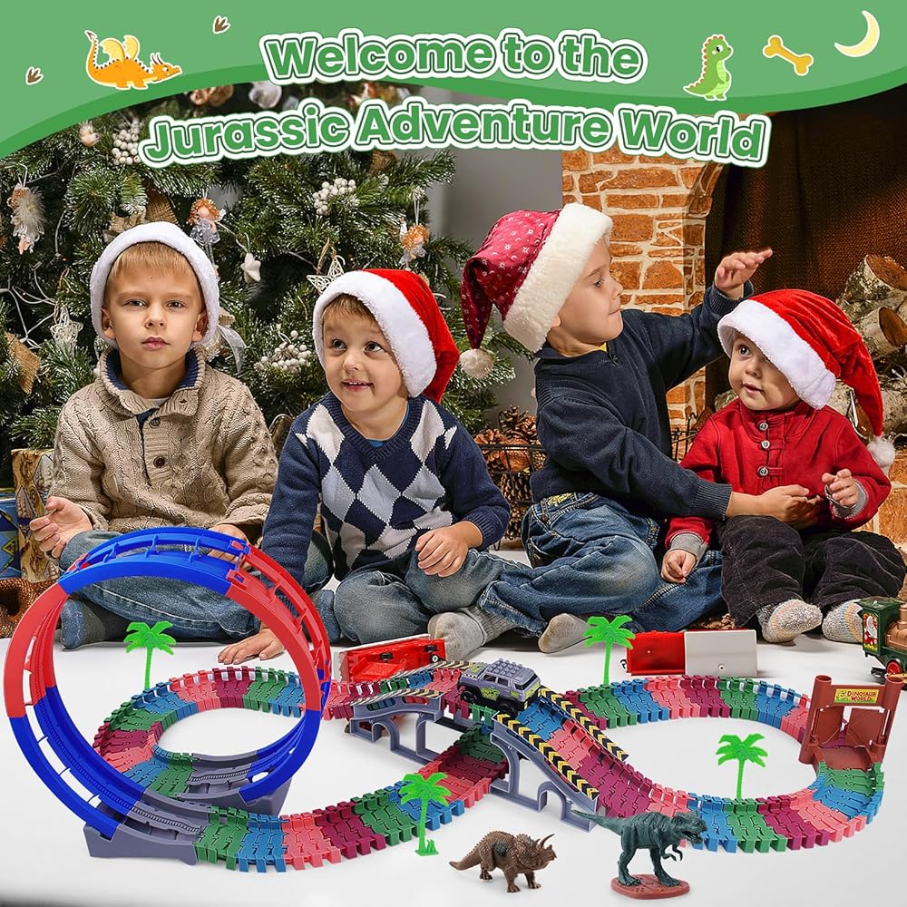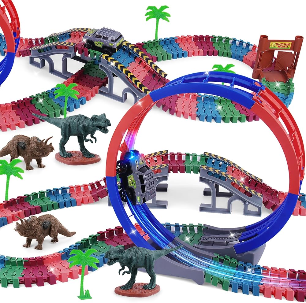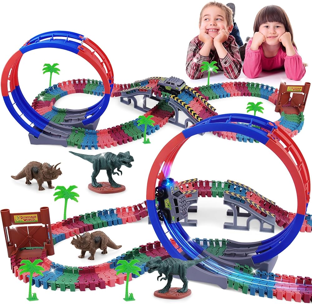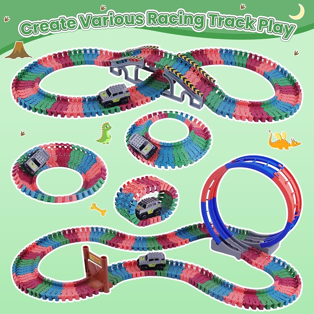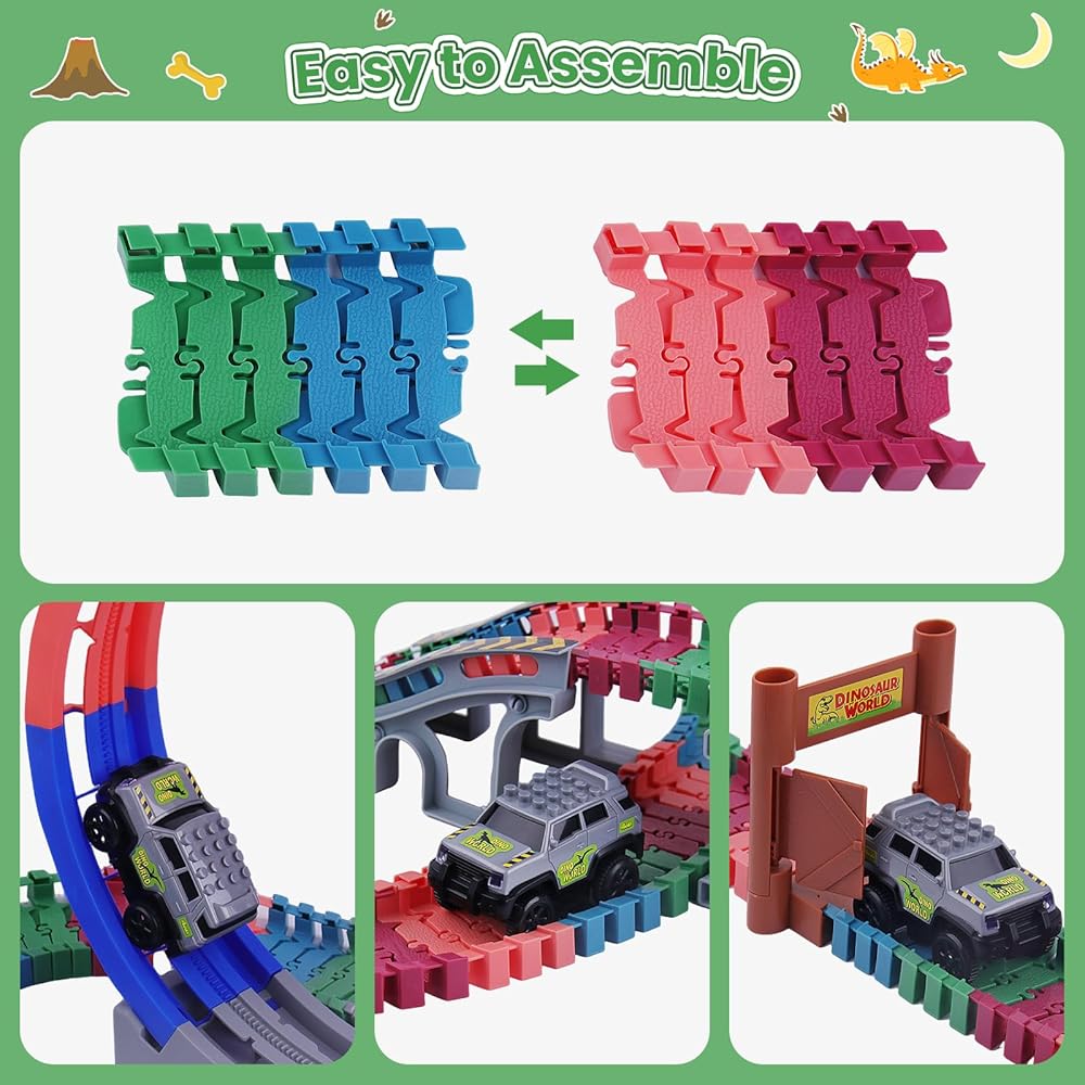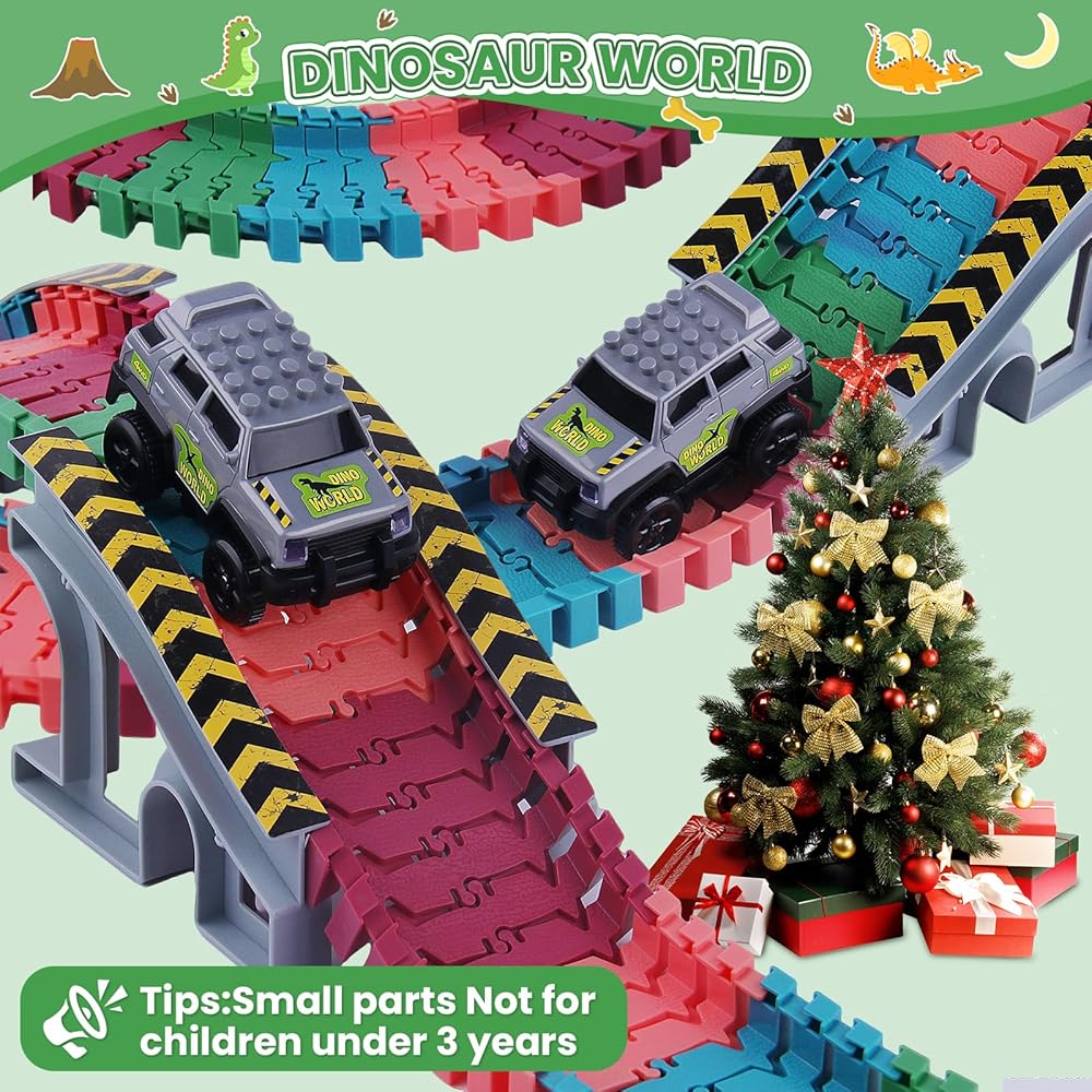 ألعاب سباق سيارات الديناصورات للأطفال من سن 3 إلى 5 سنوات، مجموعة مسارات مرنة DIY تتوهج في الظلام، ألعاب دينو مغامرة سباق الطريق للأطفال، هدية عيد ميلاد للأعمار من 3 إلى 9 سنوات للأولاد والبنات الصغار