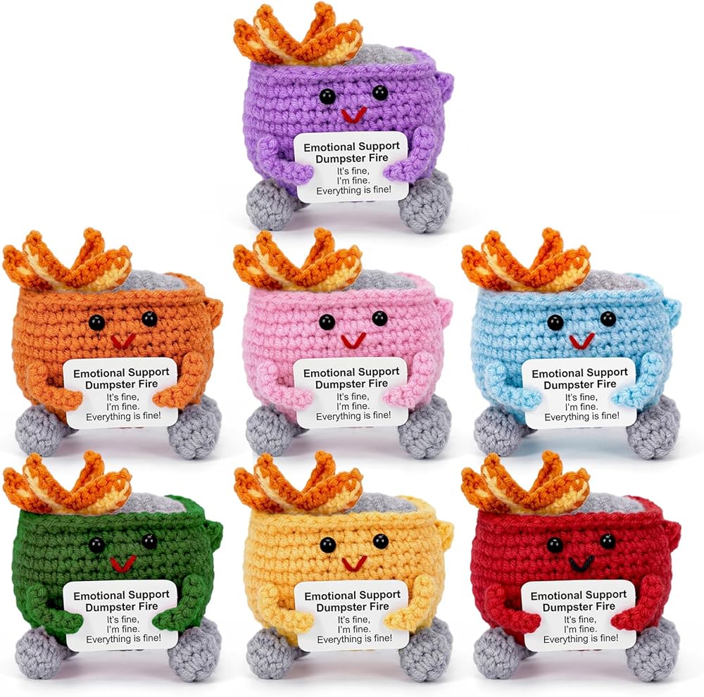 7 قطع من الكروشيه للدعم العاطفي مع بطاقة إيجابية، ملحقات مكتبية لطيفة مصنوعة يدويًا، هدايا عيد ميلاد لزملاء العمل لتخفيف التوتر للنساء والرجال، ديكور مكتب مضحك