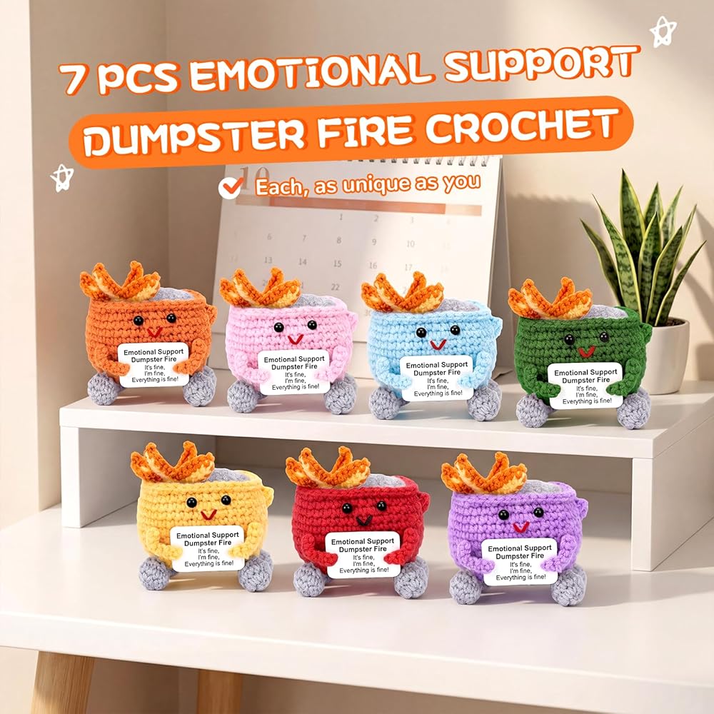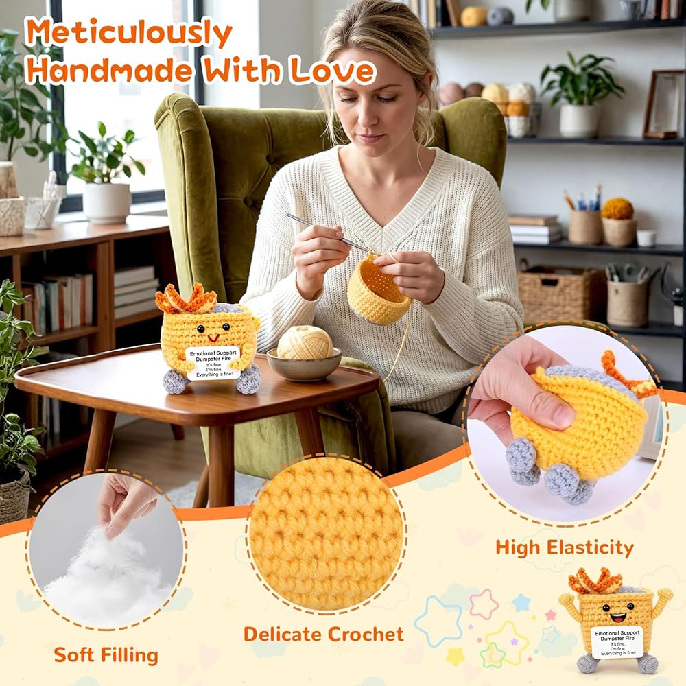 🎁 [معتمد في إدارة الفوضى] ارفع مستوى عقلك! اختر حجمًا صغيرًا (3.5 بوصة) للمكاتب لديكور الأرفف. يمزج هذا الكروشيه الناري في القمامة بين الديكور البارع والمرونة - لأن الكبار لا ينبغي أن يعني الاحتراف بنسبة 100٪.