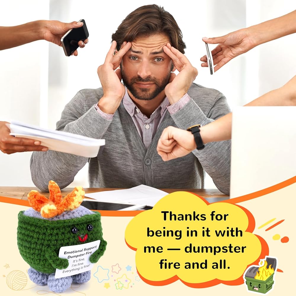 🔥 [علاج مكتبي يغذيه الفكاهة] تعرف على ملحقات مكتب إطفاء القمامة المثالية! يجلس هذا الصديق الملتوي من الكروشيه بفخر على مكتبك، ويهمس "هذا جيد" خلال أيام العمل الفوضوية - وهو مسكن للضغط عن طريق اللمس في المواعيد النهائية أو اجتماعات الميزانية.
