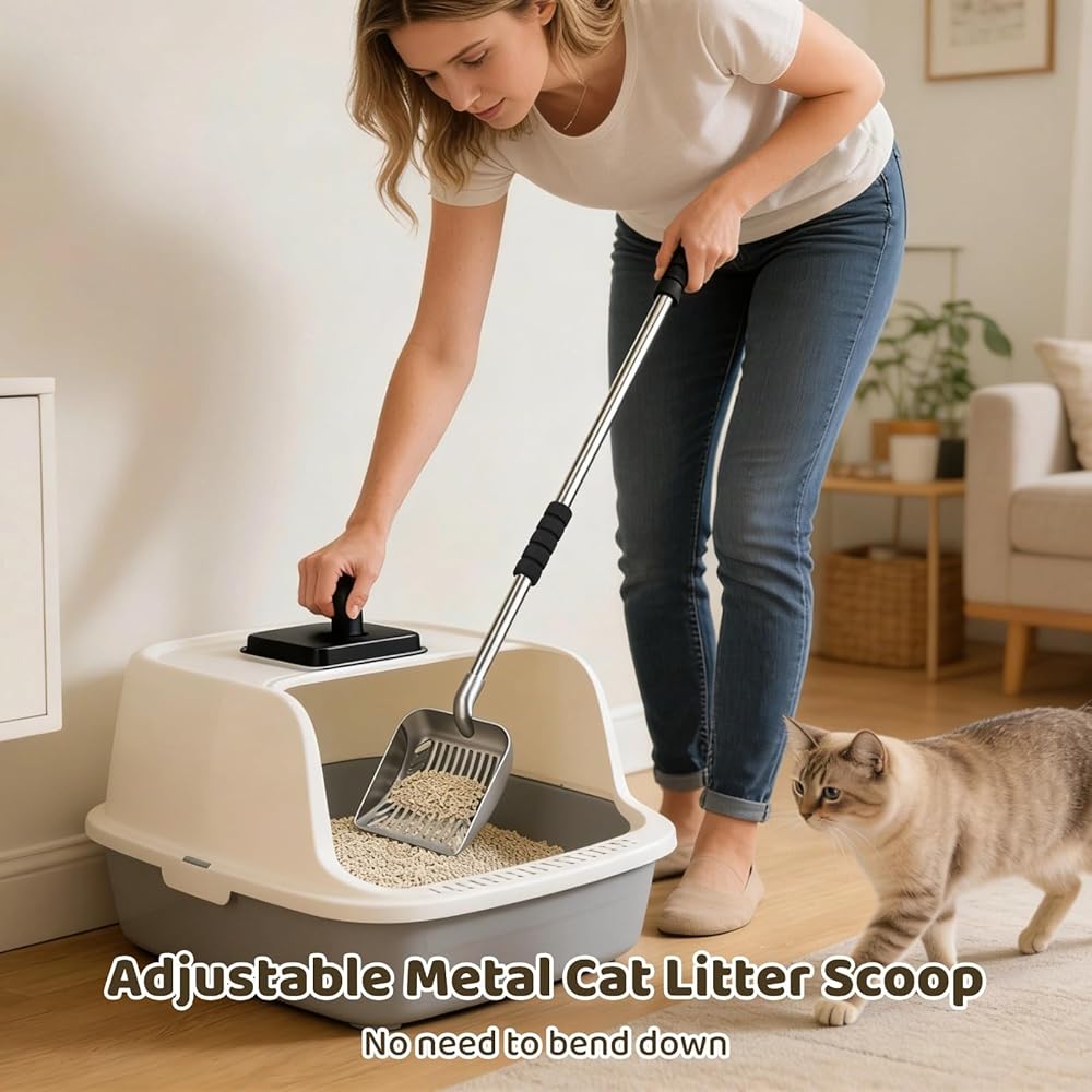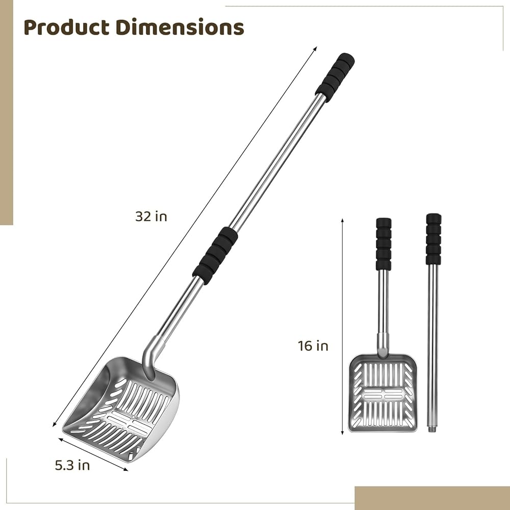 هيكل عالي الجودة: مصنوع من معدن قوي وشديد التحمل، مغرفة القمامة هذه تتحمل الاستخدام اليومي دون الانحناء أو التشوه؛ يضمن المقبض السميك والمريح المبطن بالفوم قبضة آمنة وغير قابلة للانزلاق، مما يجعل تنظيف صندوق الفضلات مهمة سهلة وخالية من المتاعب.