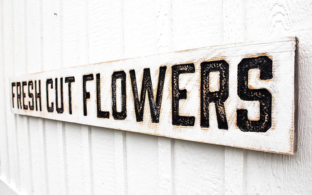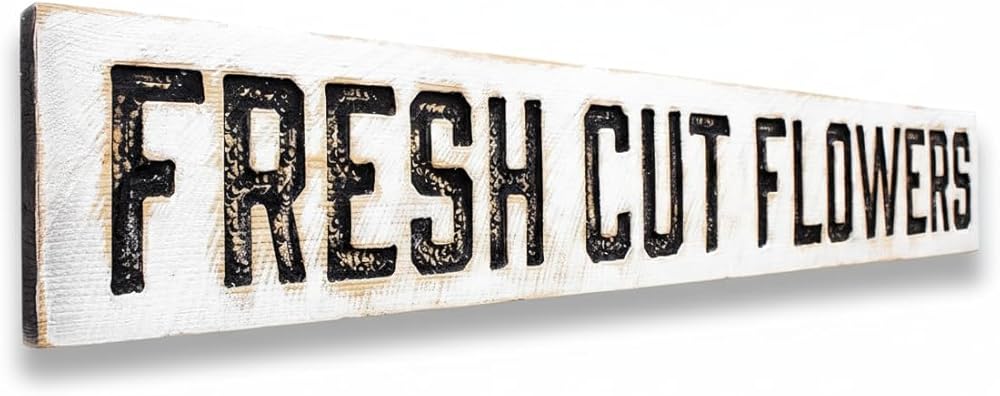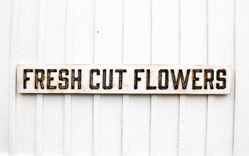 Handcrafted and carved in our North Carolina studio, this solid wood "Fresh Cut Flowers" sign features our signature rustic, distressed finish that will suit many décor styles.