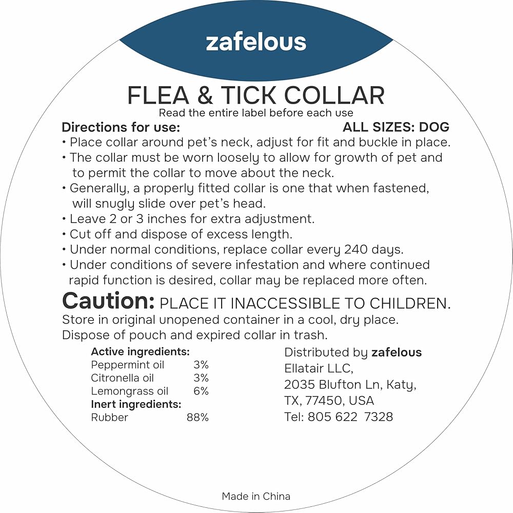 • Increased Efficiency: The ZAFELOUS dog flea collar enjoys an improved formula which works against a wide variety of ticks, fleas and eggs. Unlike similar products on the market, this collar acts by preventing the tick from biting, instead of killing it post-bite, contributing to a better protection of your pet!