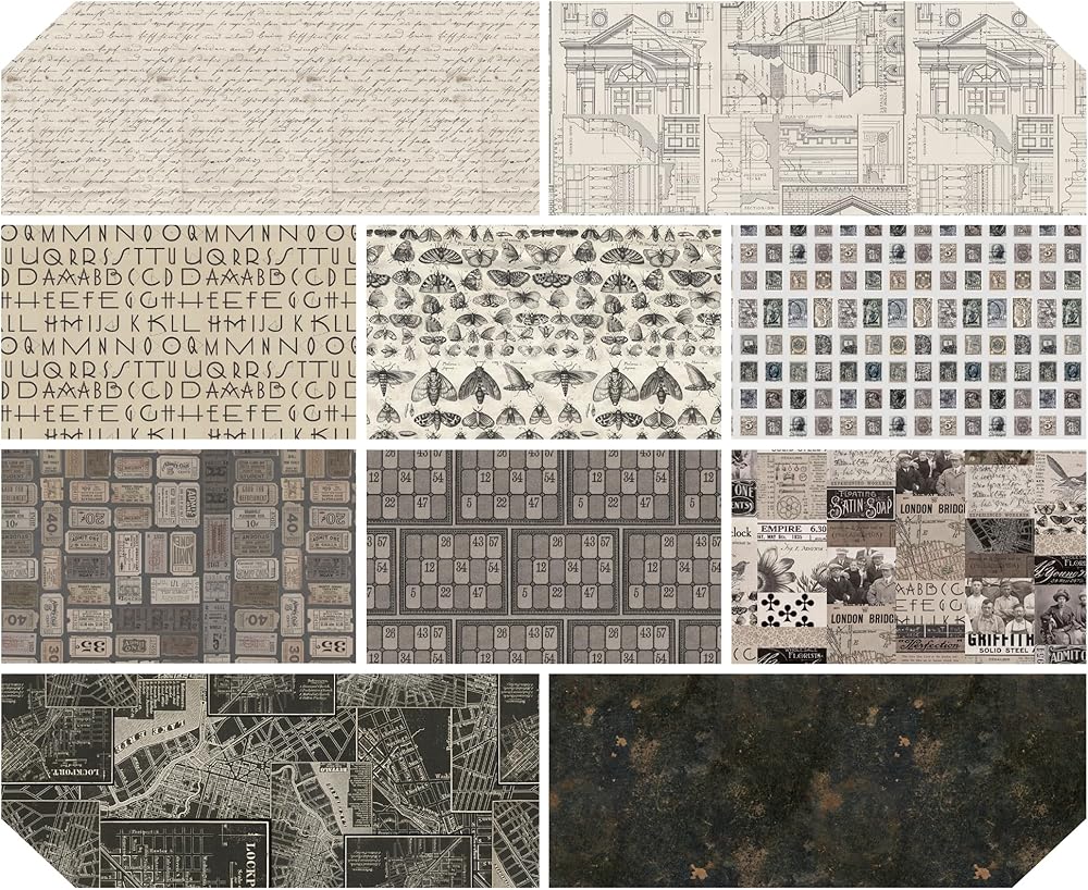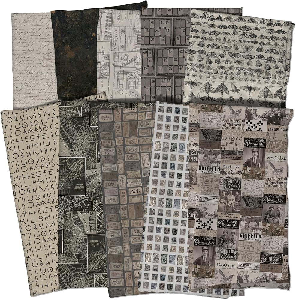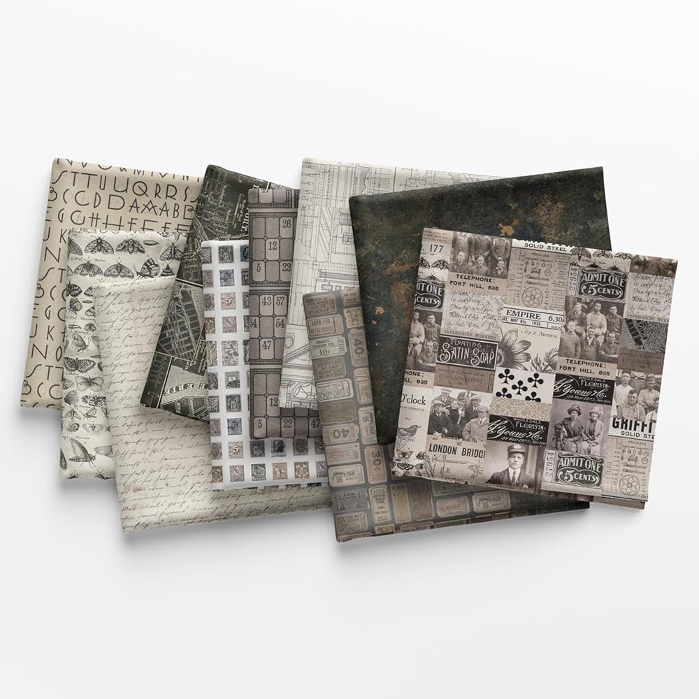 Designed by Tim Holtz for FreeSpirit, this fat eighth bundle includes 10 - 9 x 21 inches (22.86 cm x 53.34 cm) fabric cuts from the Eclectic Elements Palette: Charcoal collection. There are 10 different prints in this bundle. All fabric is quilt shop quality 100% cotton. This fat eighth bundle is cut by Lily Bella Fabrics, an authorized FreeSpirit retailer.