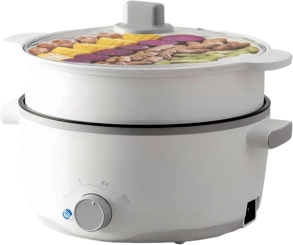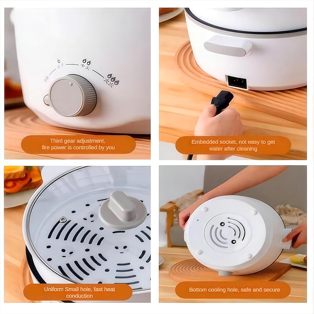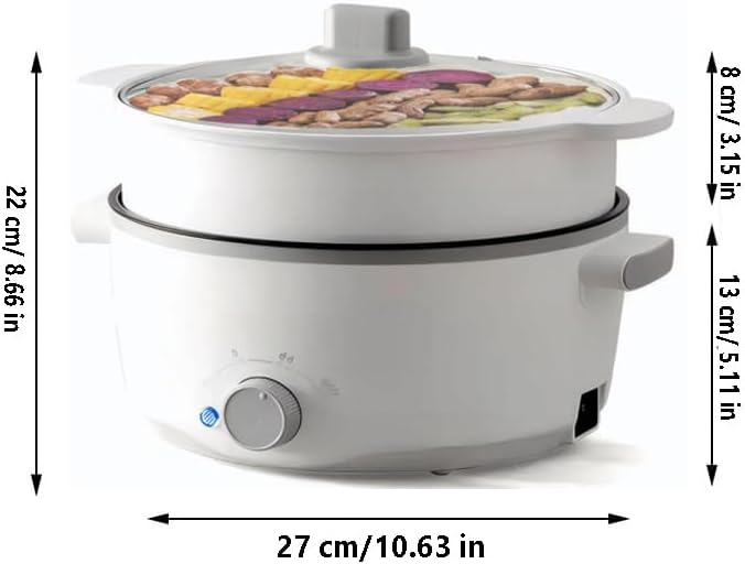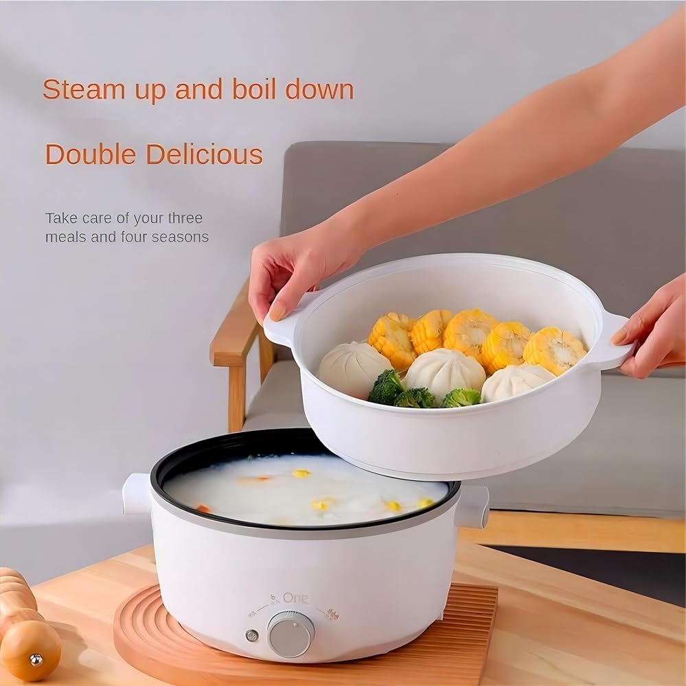 【3L Electric Cooker with Stainless Steel Steamer】Enjoy greater versatility with this 3L mini hot pot, specially designed for small families, couples, or solo cooks. The included stainless steel steamer lets you boil soup, noodles, or dumplings in the pot while steaming vegetables or eggs above — a layered cooking solution for faster, healthier meals. It's your all-in-one answer for breakfast, lunch, or dinner in compact spaces.