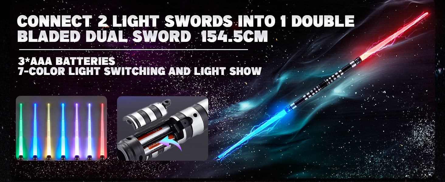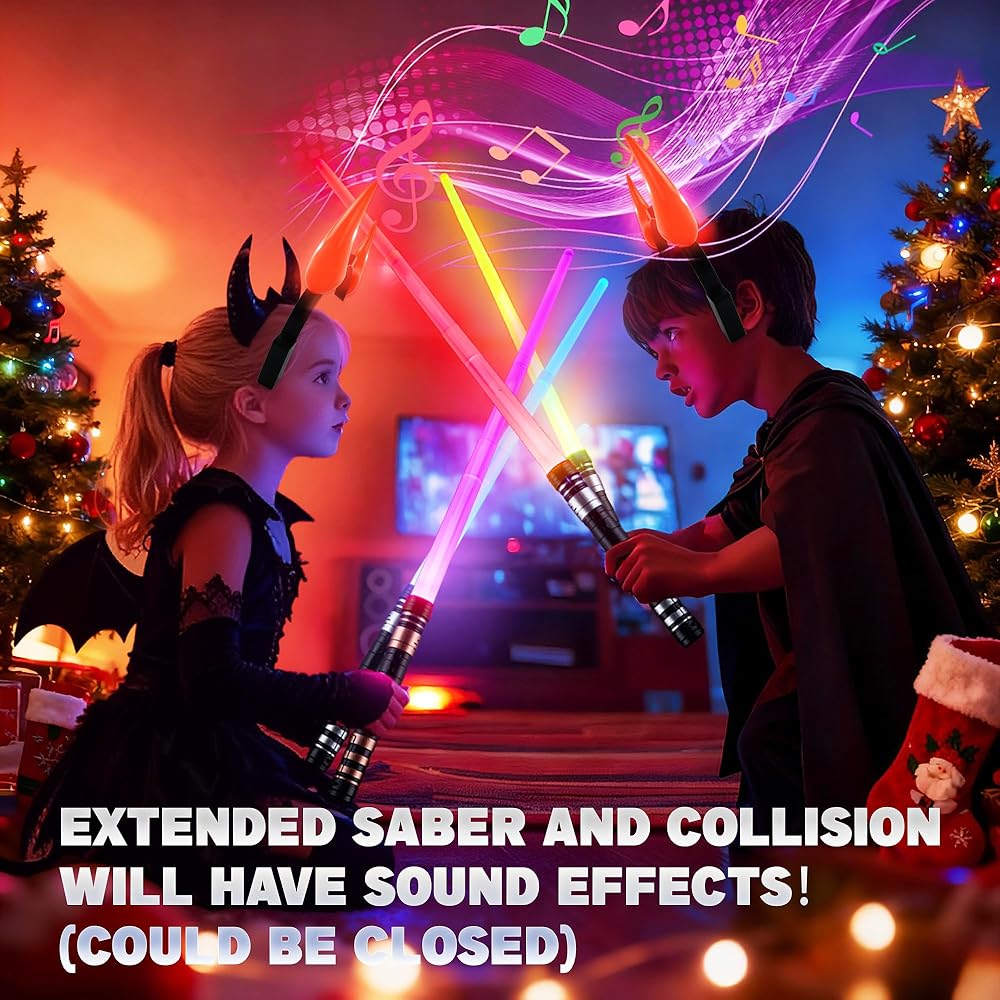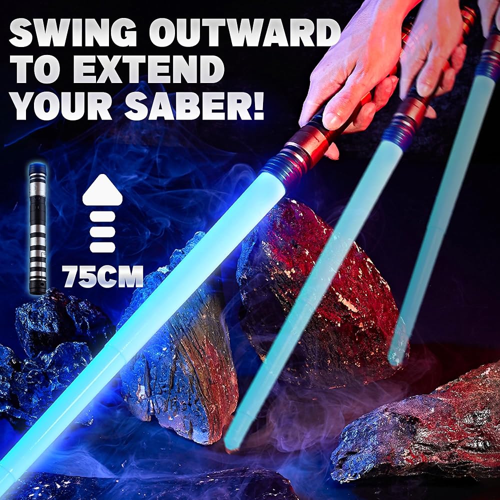 7 ألوان وتأثيرات صوتية FX: تتوهج السيوف بشكل مشرق في 7 ألوان نابضة بالحياة وتتميز بمؤثرات صوتية مثيرة للاشتباك/تعزيز القوة لمعارك تظاهر غامرة.