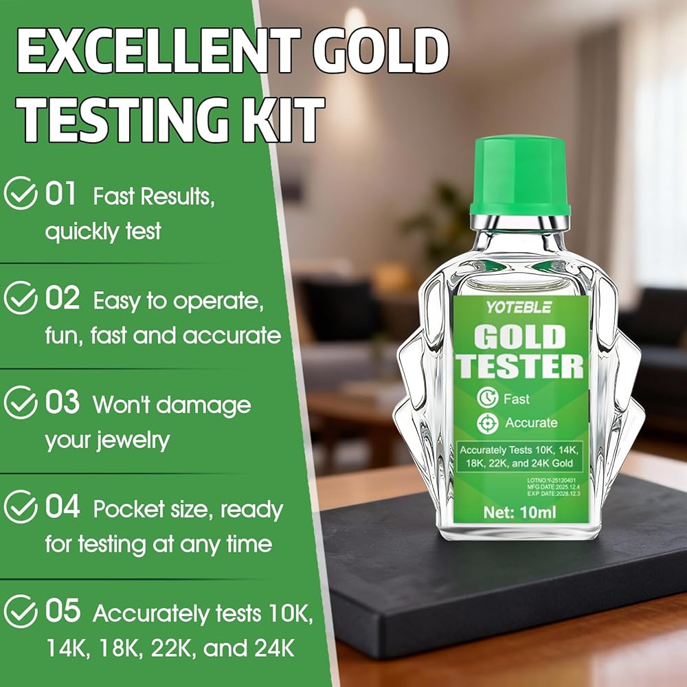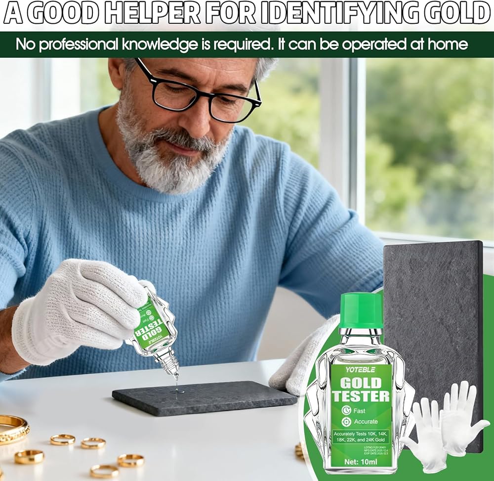 Whether you're a jeweler, collector, or DIY enthusiast, YOTEBLE Professional Gold Test Kit is the ultimate tool for verifying the purity of gold, silver, and platinum. The complete gold and silver testing kit includes 10G high-purity solutions and a specialized test stone, covering 10K to 24K gold and other precious metals. Get results in 3 seconds to accurately identify fakes and safeguard your investments