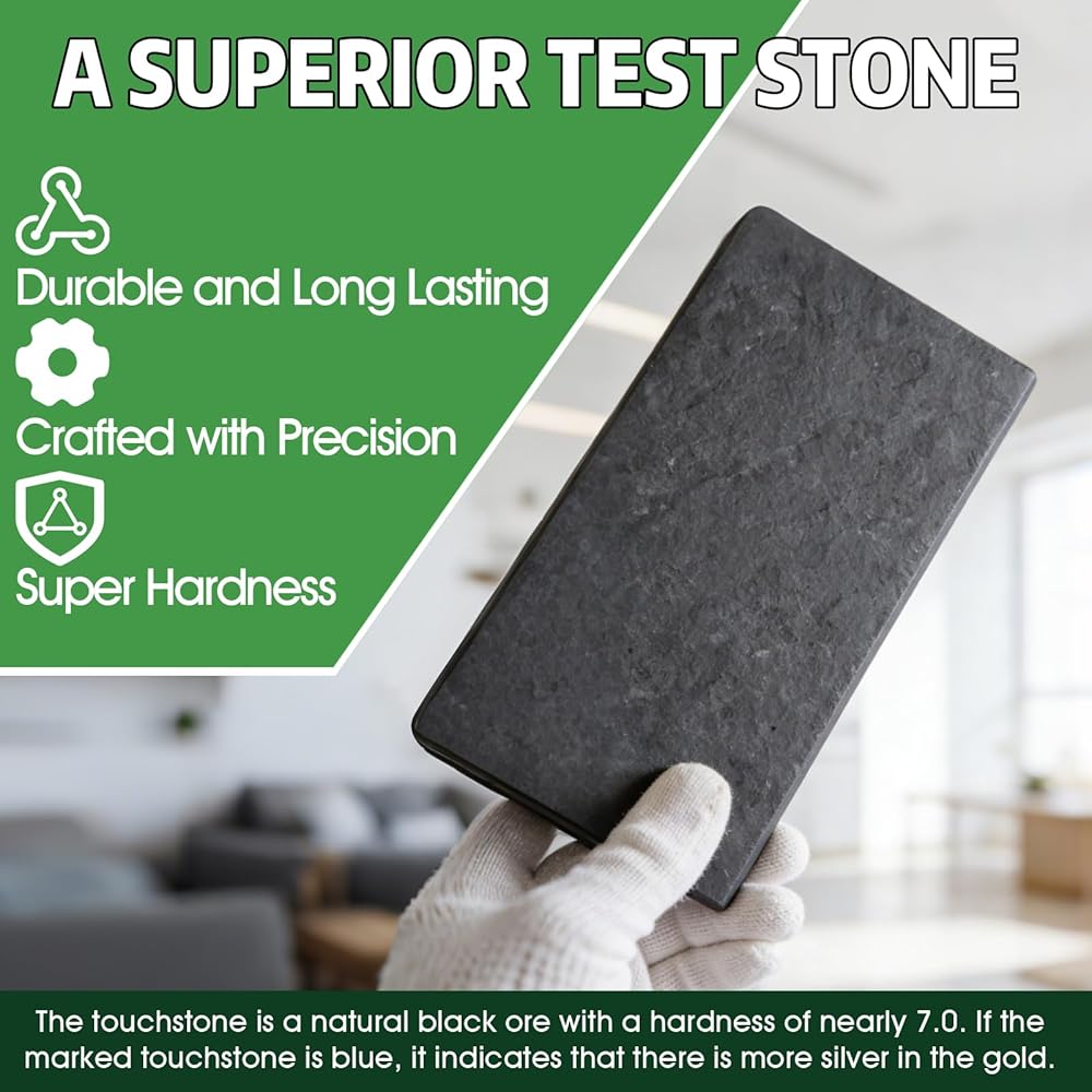 • ✔A Superior Test Stone: Featuring fine, smooth and extremely hard, with a hardness of nearly 7.0. When it is scratched on a stone, no sound can be heard. If the touchstone is cyan, it indicates that the gold contains a relatively high amount of silver