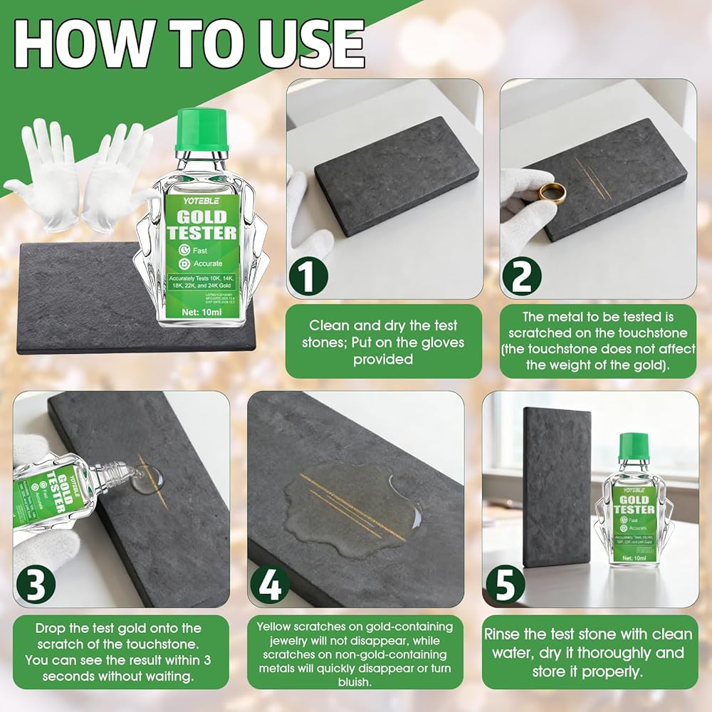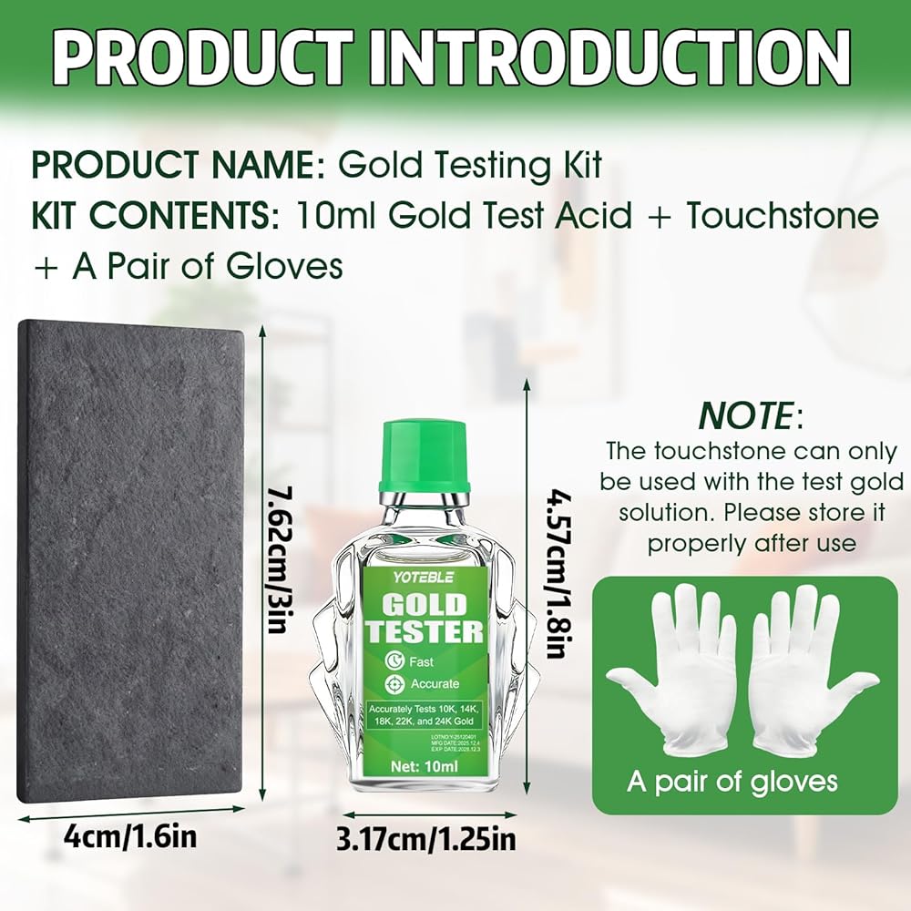 • ✔ A Good Helper for Identifying Gold: YOTEBLE gold tester kit Includes 10g solutions and a durable test stone, for safe testing that won't damage your jewelry, and ensure authenticity