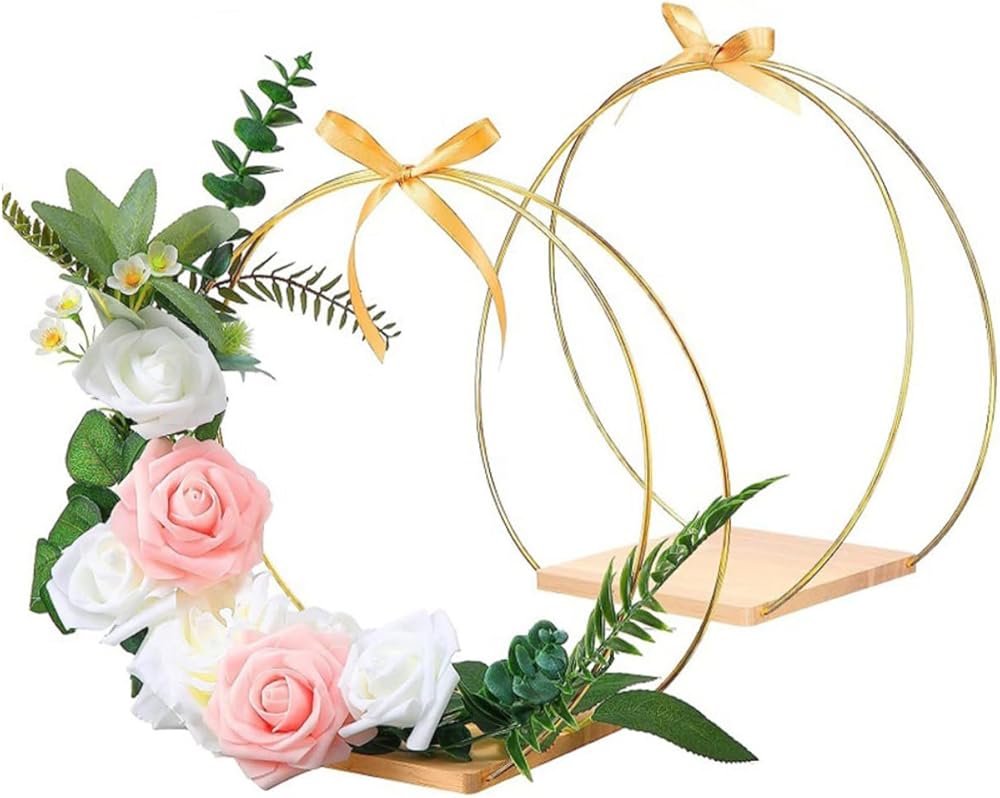 Iron floral hoops centerpiece:each iron wreath ring is easy to attach the flowers to the wreath, you will be amazed by the elegance and romantic atmosphere it brings to you,floral hoop centerpiece for table