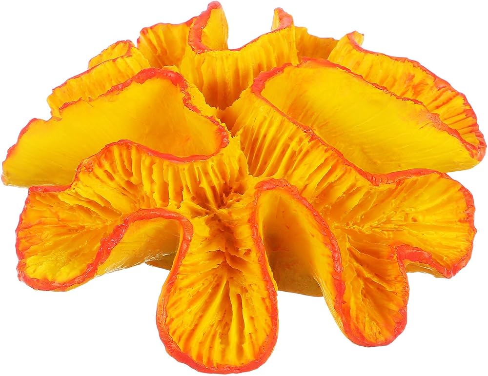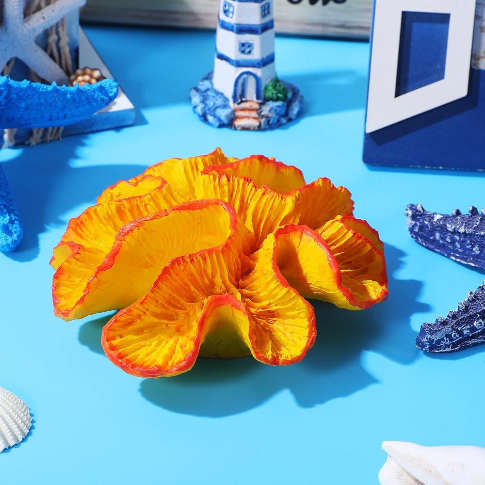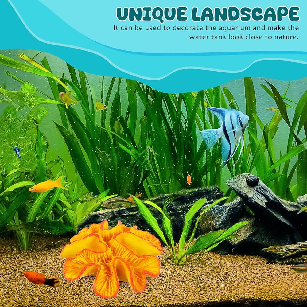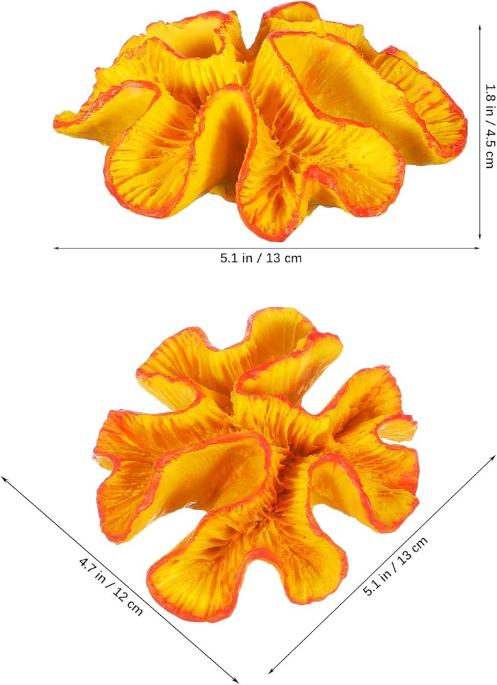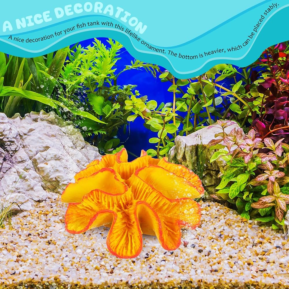 Enhance your aquarium with this vibrant orange coral reef decor made from resin Designed to add natural beauty and lively color to both freshwater and saltwater tanks, this fish tank coral ornament offers a realistic underwater landscape Its compact size of approximately 5.11 x 4.72 x 1.77 inches fits perfectly in small to medium aquariums, creating a visually appealing environment for your aquatic pets