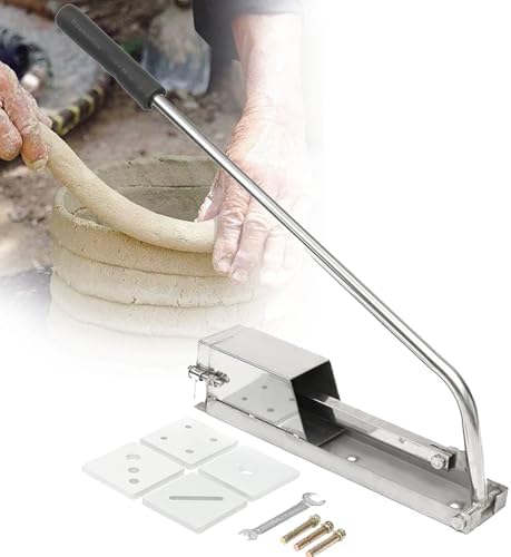 - Stainless steel clay extruder, wall-mounted design, suitable for pottery and ceramic making, includes 4 ceramic dies for extruding soft clay.