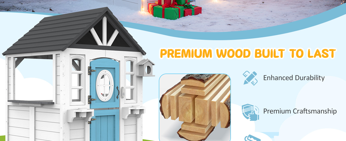 هيكل خشبي متين - مصنوع من خشب عالي الجودة مع سقف قوي، وإغلاق باب مغناطيسي، وطلاء مقاوم للطقس، وقد تم تصميم بيت اللعب للأطفال هذا ليدوم في الفناء الخلفي أو الحديقة لوقت اللعب على مدار العام.