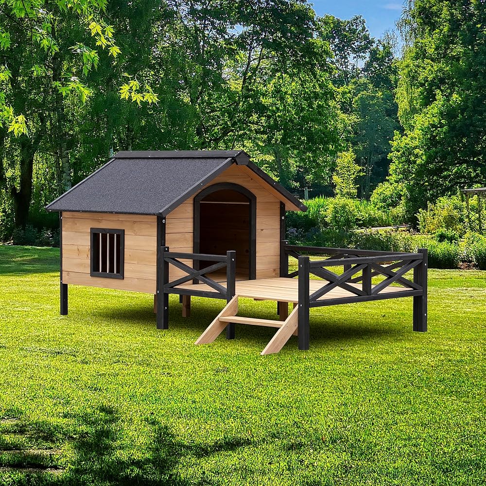 GDFStudio Large Outdoor Dog House with Porch Deck