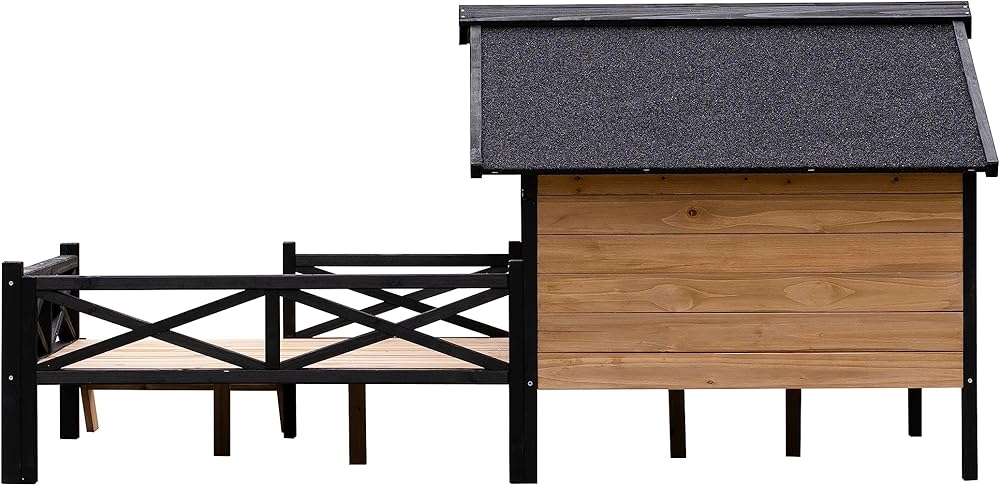 • 【Hinged Roof for Easy Cleaning and Ventilation】The main living area features a hinged roof that opens easily for interior access. This thoughtful design allows quick cleaning, airing, and maintenance, helping maintain a clean and comfortable dog house outdoor space.