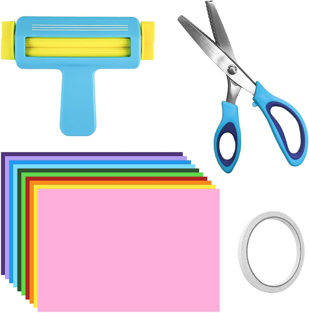 Built with smooth-rolling gears and a comfortable grip, it's lightweight enough for extended use and compact for easy storage in craft bins or drawers. Whether you're adding a playful touch to a birthday card or crafting custom decor for holidays, this Paper Crimper Set turns ordinary paper into something special—no professional skills required! Craft set includes: 1* plastic paper crimper 1* pack of 100 sheet glossy thin inkjet papers/32lb colored paper/32lb kraft paper 1* pair of 9 inch scissors 1*roll of double sided tape