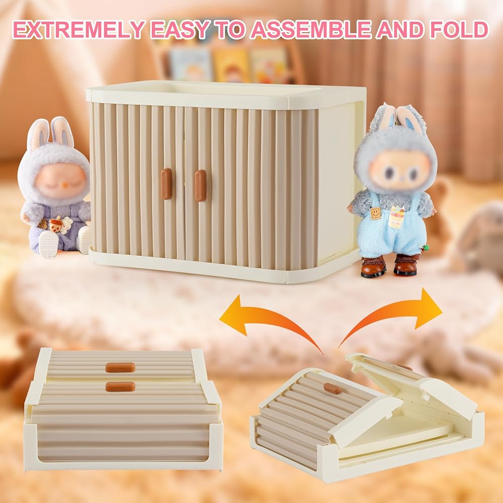 【قابلة للطي وقابلة للتكديس لتوسيع المجموعات】 يمكن طيها بشكل مسطح تمامًا في ثوانٍ، مما يجعل من السهل حملها إلى اجتماعات الدمية أو المؤتمرات. يتيح تصميمها المعياري إمكانية التكديس الآمن لوحدات متعددة، مما يؤدي إلى بناء نظام خزانة قابل للتخصيص ينمو جنبًا إلى جنب مع مجموعتك.