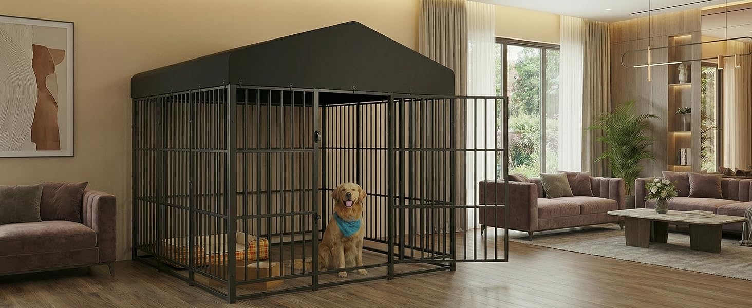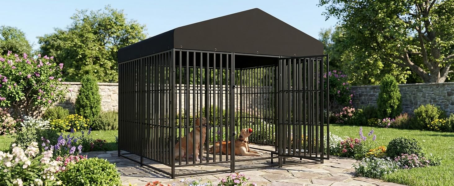 منطقة لعب آمنة وواسعة بيت الكلب الكبير في الهواء الطلق مساحة مكعبة 73 بوصة تسمح بحرية الحركة؛ حواف سلكية ناعمة وطبقات معززة تمنع الإصابات.