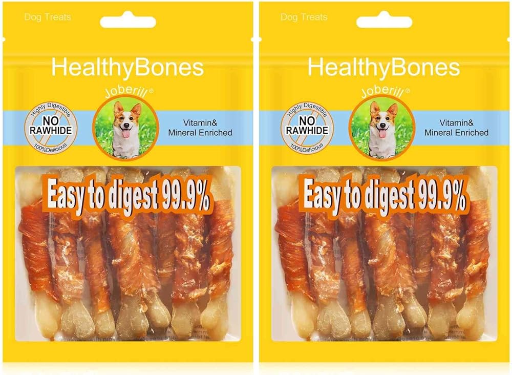 HealthyBones Rawhide Free Healthy Foods for American Pit Bull Terrier and Other Large Terrier Dogs , Chicken Wrapped Sticks Dog Foods, Soft Chewy Foods for Training Rewards HEALTHYBONES Dog Foods We provide the highest quality products in strict compliance with local food safety standards. All products are composed of pure natural raw materials, after processing into product, we will also carry out a series of rigorous testing and maintain our high standards in the packaging. Enriched With Protein Chicken contains a relatively high protein, which is easy to digest and absorb and helpful for dog's gastrointestinal absorption. Natural Ingredients - Rawhide Free RAWHIDE FREE dog chews have all the benefits of a Rawhide Chew without the RAWHIDE – chewing helps maintain healthy teeth. Chicken Sticks are rich in protein, vitamins and minerals which can nourish the dog's hair, improve the dog's digestion, and make your dog more energetic than ever before. Feeding Tips It is not suitable for puppies under 3 months. Observation is recommended when giving Foods or chews. Please provide dogs with plenty of clean drinking water. Please feed as soon as possible after opening.