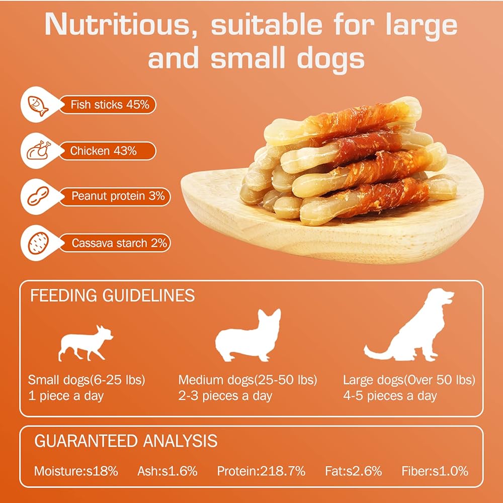 【Rawhide Free】100% Rawhide free dog chews with real chicken are high in protein and low in fat, which are easy to digest and helpful for dog's gastrointestinal absorption.