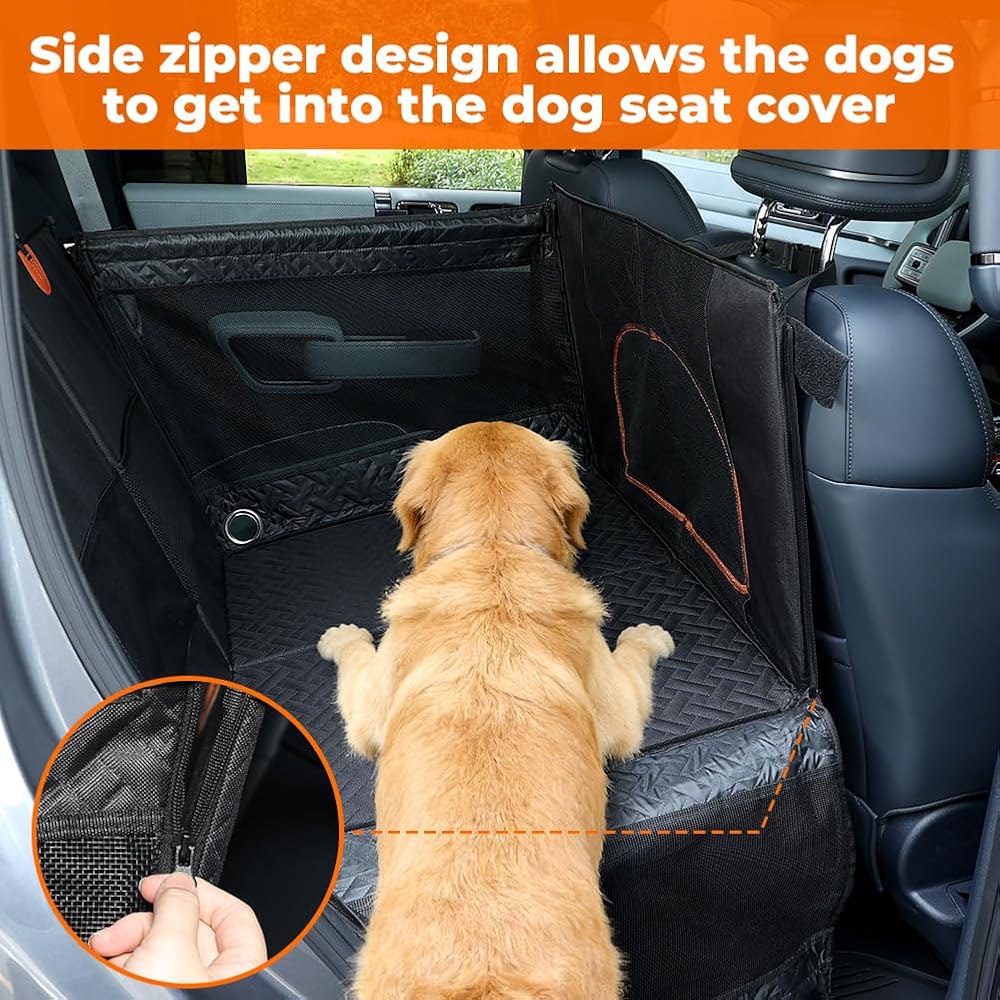 مشاركة المقعد الخلفي مع الشخص المفضل لدي. مع غطاء مقعد سيارة الكلاب هذا، يمكنهم الاسترخاء بجانبي تمامًا في المقعد الخلفي! نعم، يمكن لشخصي المفضل أن يركب البندقية معي، أو لا يزال هناك مكان لمقعد طفل. إنه الإعداد النهائي للحزمة بأكملها
