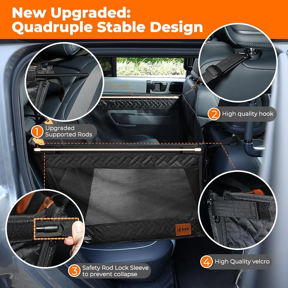 مقعد سيارة كبير للكلاب من KYG للكلاب الكبيرة والمتوسطة الحجم مع وسادة، غطاء مقعد سيارة بقاعدة صلبة مقاومة للماء للكلاب مع 3 نوافذ شبكية، مقعد سيارة للحيوانات الأليفة قابل للطي للسيارات/سيارات الدفع الرباعي/الشاحنات