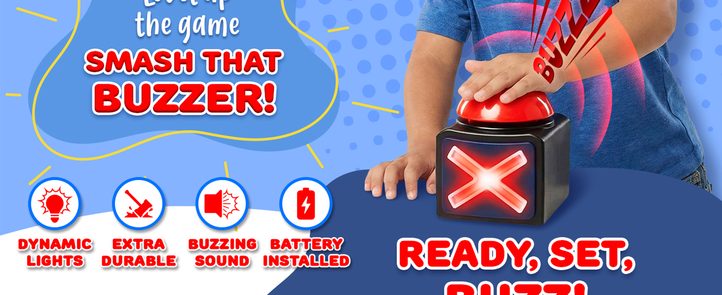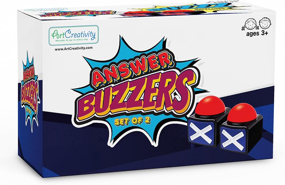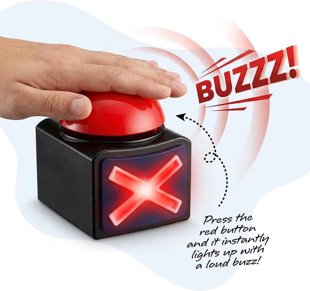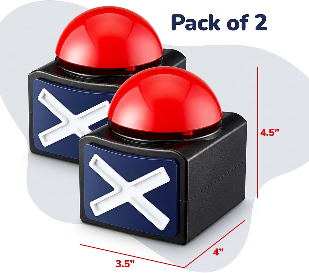 • مضاعفة الضجيج: تم إعداد صفارة للإجابة لتمهيد الطريق لليلة لعب ملحمية! تتضمن هذه الحزمة زرين طنينين للارتقاء بألعاب التوافه والألعاب اللوحية إلى المستوى التالي. سواء كنت تطن للإجابة على سؤال أو الإشارة إلى "لا" بشدة، فسيتم سماع الصوت من جميع أنحاء الغرفة.