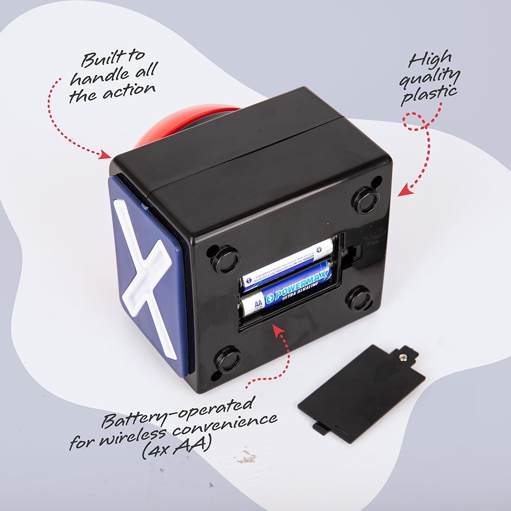 • الأضواء والأصوات: مجموعة أزرار الجرس هذه لا تخلق تأثيرات صوتية كلاسيكية فحسب؛ كما أنها تضيء لتجذب كل عين. اضغط على الجزء العلوي وسيومض رمز "X" الأبيض باللون الأحمر. وهذا يعني المزيد من الحركة الديناميكية لإضافة الطاقة إلى الألعاب.